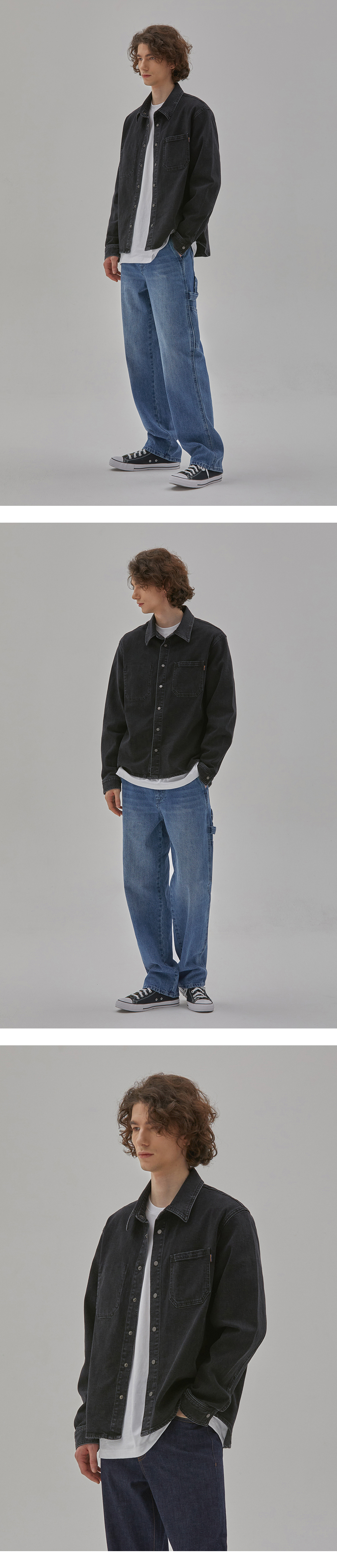 률앤와이 데님 세미 오버핏 스톤 워싱 셔켓 블랙