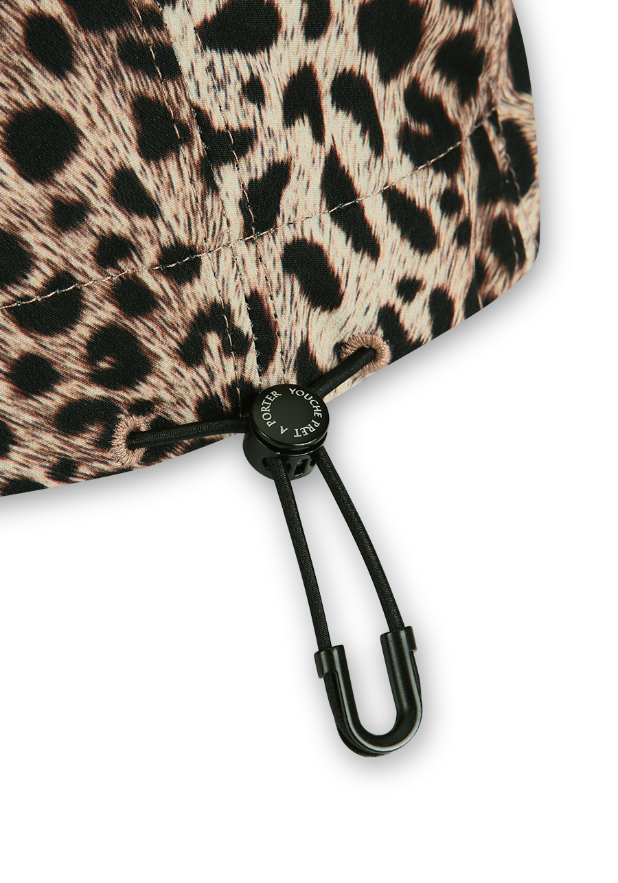 Material Outshell : 170g/sqm Polyester 100% Liner : Coolmax liner Colour : Leopard - 매끄럽고 은은한 광택감의 소재 - 넓고 깊은 챙으로 안정적인 착용감 - 후면 사이즈 조절 가능한 스트링 - 브랜드 로고 메탈 스토퍼와 유팁 사용 - 앞판 디자인 스트랩 - 땀흡수에 용이한 Coolmax Liner 사용