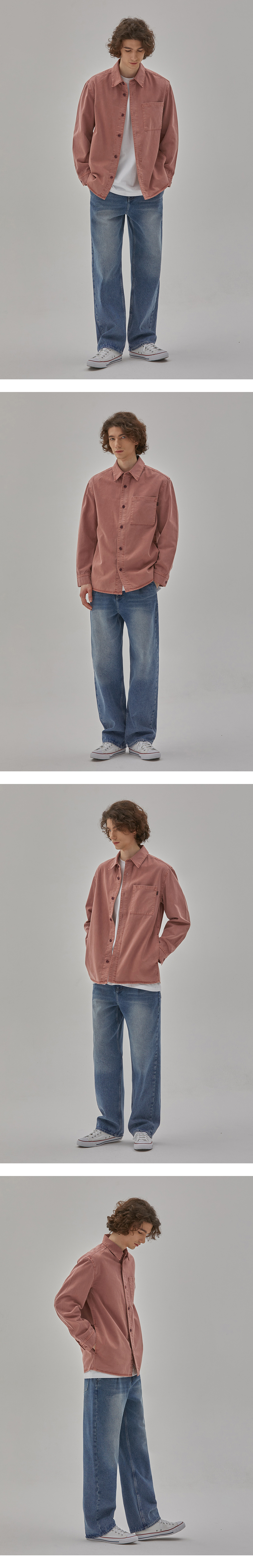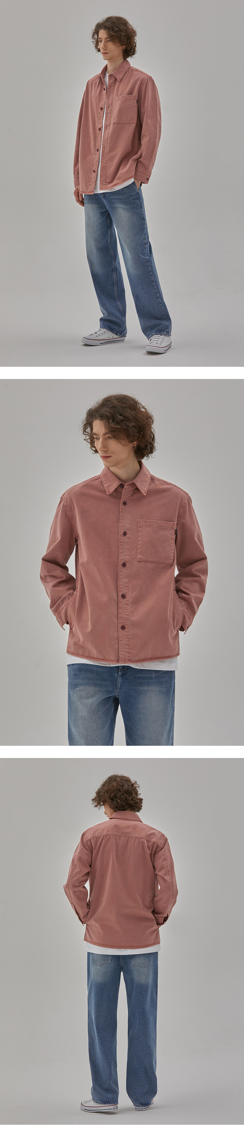 률앤와이 데님 가먼츠 다잉 포켓 셔츠 오렌지핑크