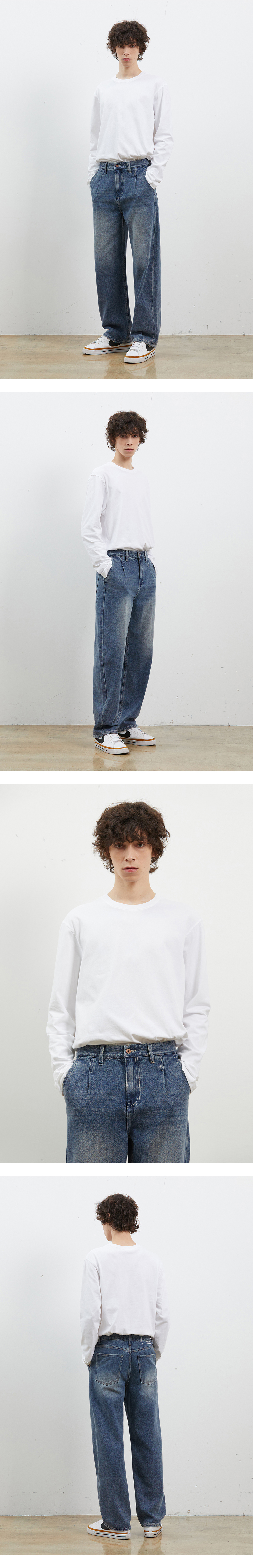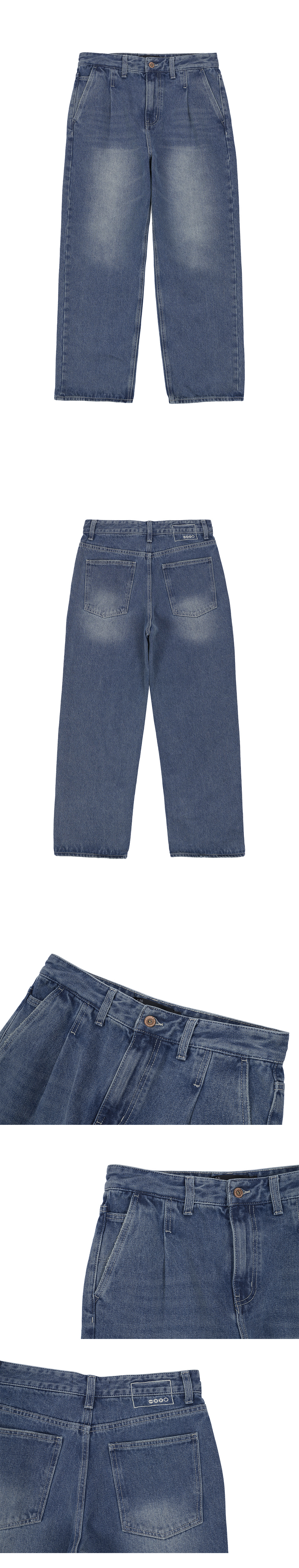 률앤와이 데님 와이드 원턱 팬츠 디 블루