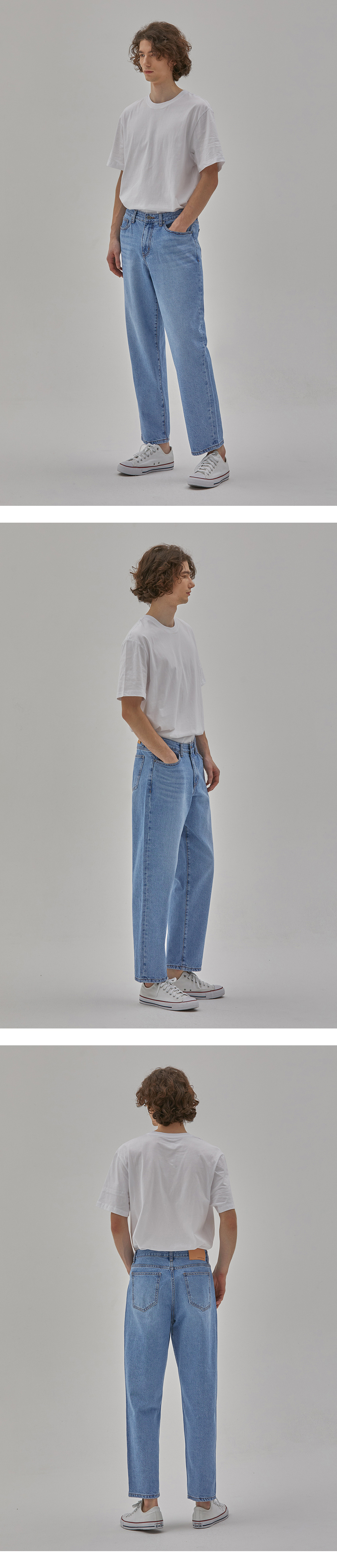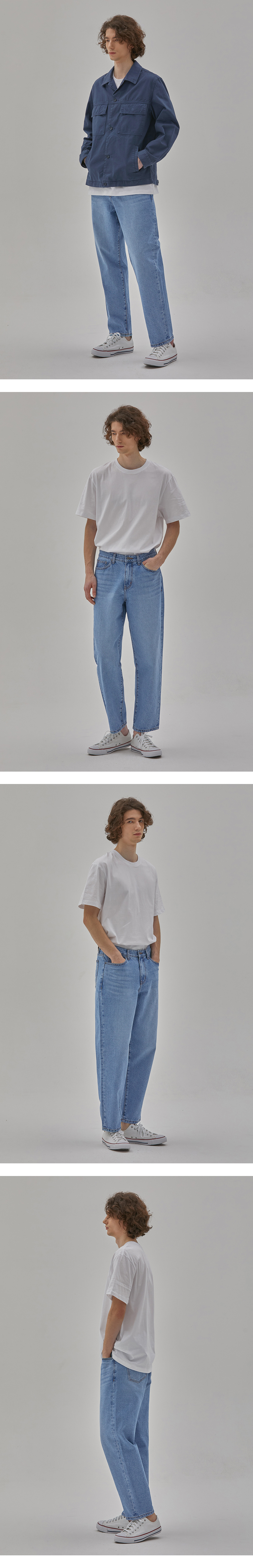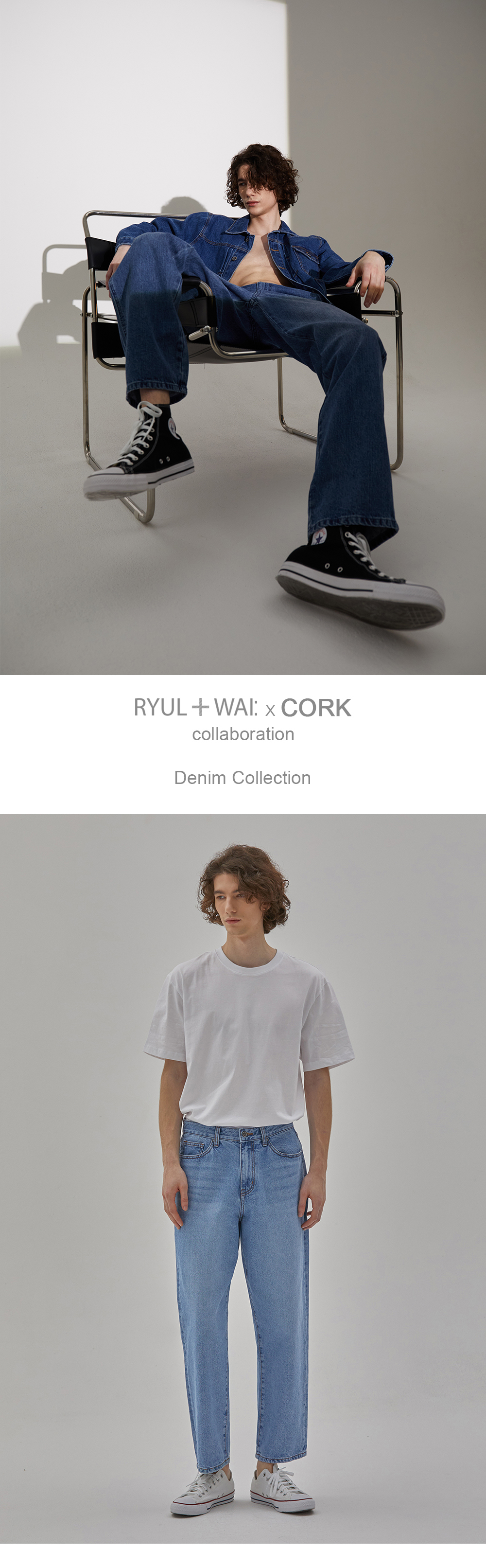 -CORK DENIM COLLABORATION COLLECTION 상품입니다. 발목까지 떨어지는 기장감에 컴포트 테이퍼드 핏의 팬츠입니다. 베이직한 워싱의 데님 컬러감으로 다양하게 코디하기 좋은 제품입니다. 여유있는 테이퍼드 핏의 제품으로 착용과 활동성이 좋은 데일리 데님팬츠입니다.