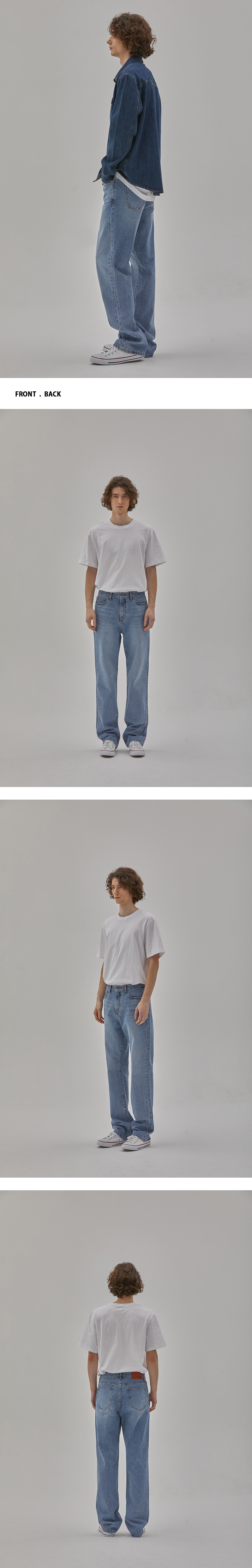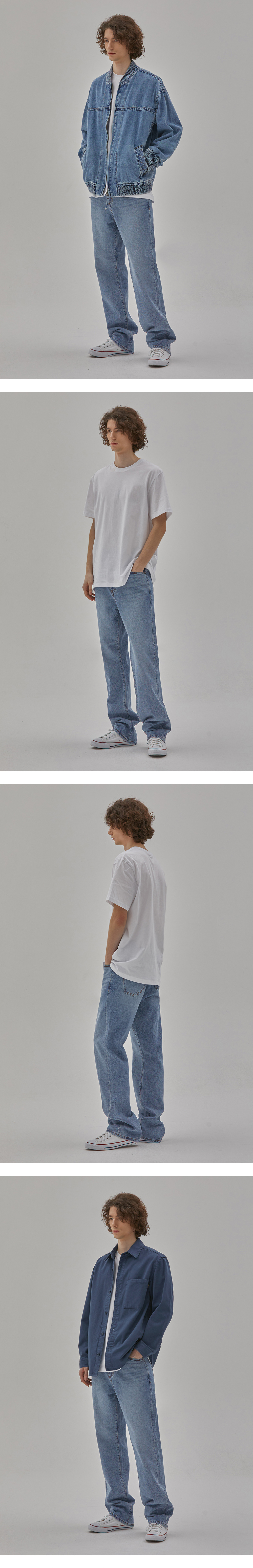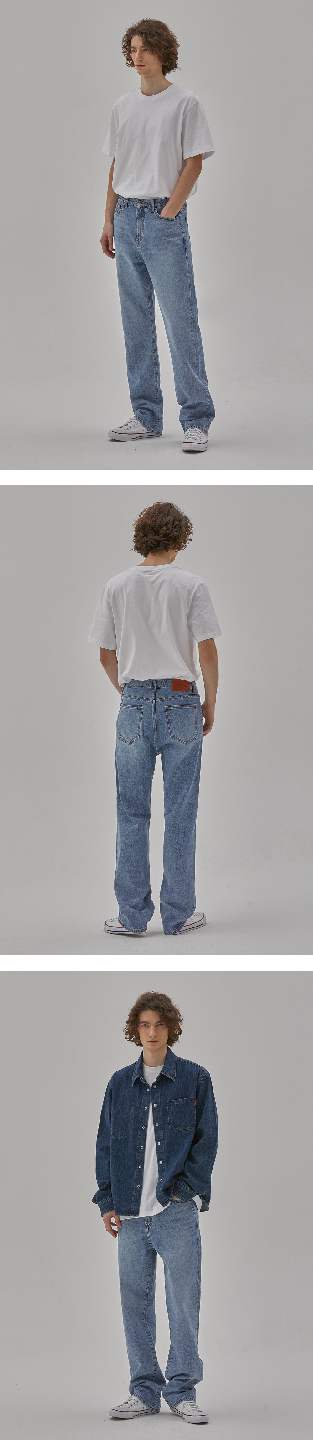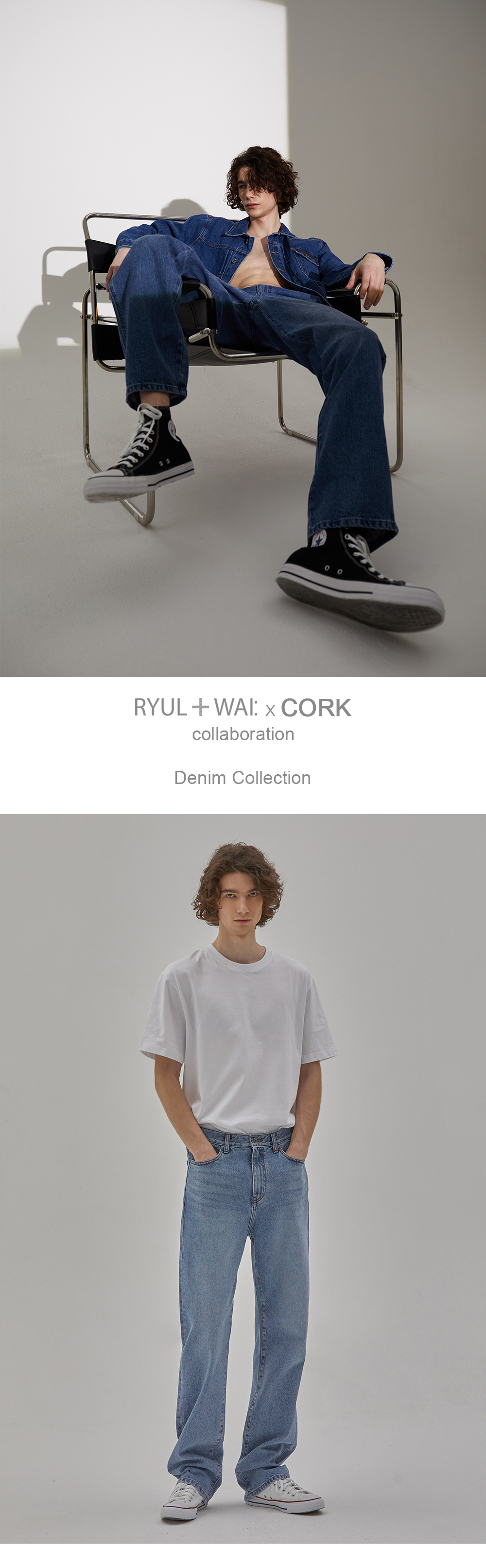 -CORK DENIM COLLABORATION COLLECTION 상품입니다. 트렌디한 롱한 기장감의 스트레이트핏 팬츠입니다. 바이오 스톤 블리치 워싱으로 베이직한 데님컬러의제품입니다. 가장 데일리한 라인의 팬츠로 다양하게 코디하기 좋은 스탠다드상품입니다.