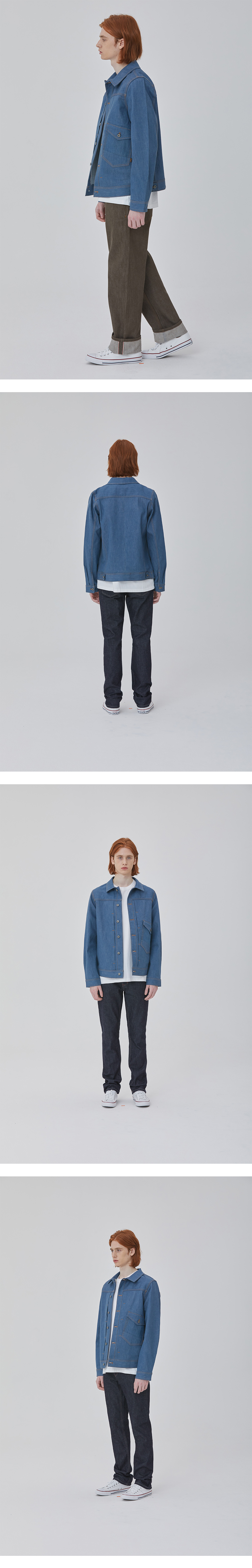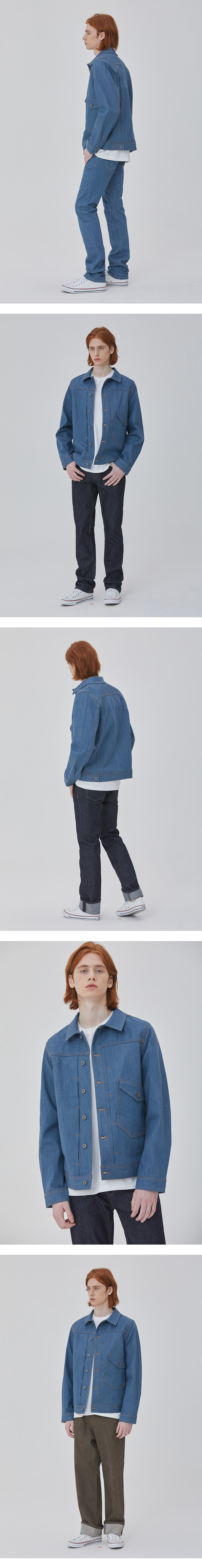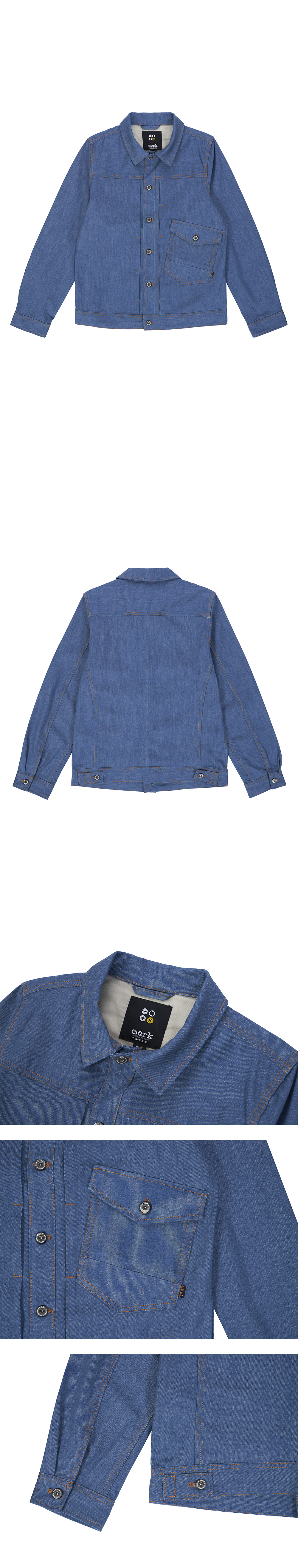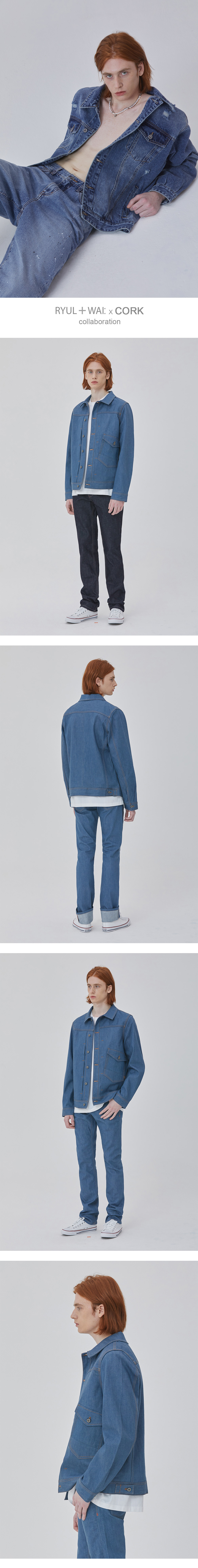 -CORK DENIM COLLABORATION COLLECTION 상품입니다. 스판이 함유되어 활동성이 좋은 자체 제작 셀비지데님원단이 사용된 상품입니다. 어깨를 피트하게 잡아주고 가슴과 소매통은 직선적인 입체적인 스트레이트 핏의 자켓입니다. 앤틱 버튼이 어울어진 빈티지스런 스타일입니다. 블루 색감이 독특하면서도 고급스러운 컬러감의 데님자켓입니다.