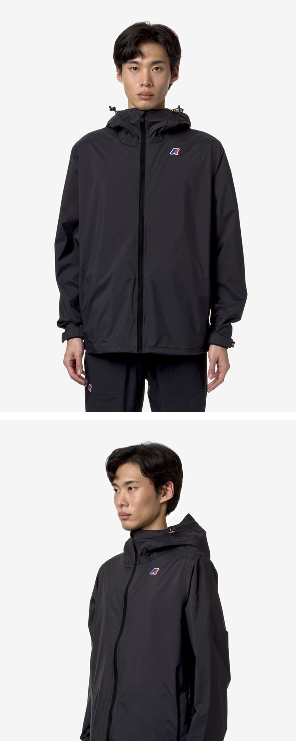 여행 가방에 간편하게 넣고 다니기 좋은 트래블 컨셉의 자켓 방수, 발수, 방풍 기능이 우수, 가볍고 부드러운 나일론 립스탑 소재 후드, 밑단 스트링으로 사이즈 조절 가능 블랙 방수 지퍼로 기능성 높임 뒷면 벤틸레이션 기능 패커블 기능으로 휴대 용이 레귤러핏