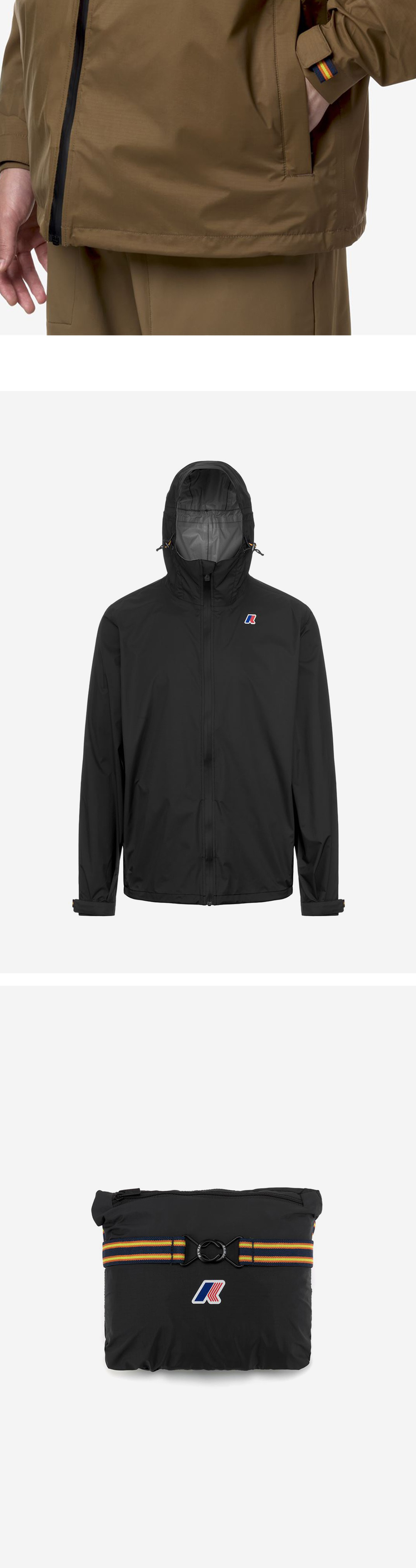 여행 가방에 간편하게 넣고 다니기 좋은 트래블 컨셉의 자켓 방수, 발수, 방풍 기능이 우수, 가볍고 부드러운 나일론 립스탑 소재 후드, 밑단 스트링으로 사이즈 조절 가능 블랙 방수 지퍼로 기능성 높임 뒷면 벤틸레이션 기능 패커블 기능으로 휴대 용이 레귤러핏