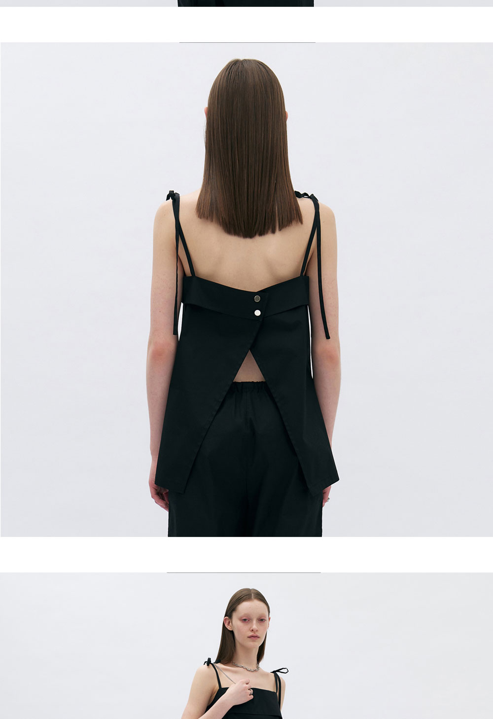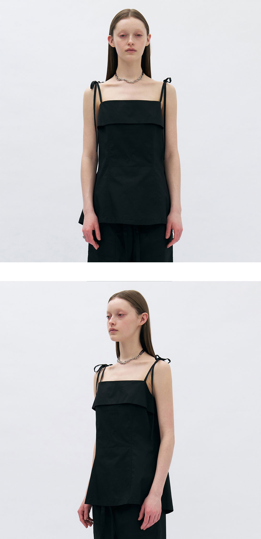 토르소의 페미닌한 실루엣이 돋보이는 슬리브리스 블라우스입니다. 어깨 스트링으로 리본을 묶어 다양한 스타일링과 기장 조절이 가능합니다. 청량감이 느껴지는 가볍고 고시감이 있는 나일론 코튼 소재로 여름철 시원하게 착용이 가능합니다 . 백 오프닝이 오버 랩 되어 여며지는 형식의 블라우스입니다. 백 오프닝의 단추로 2가지 사이즈로 조절하여 착용할 수 있습니다. 튜닉, 슬리브리스탑, 베스트 등 다양한 스타일링이 가능하여 활용도가 높은 아이템입니다.