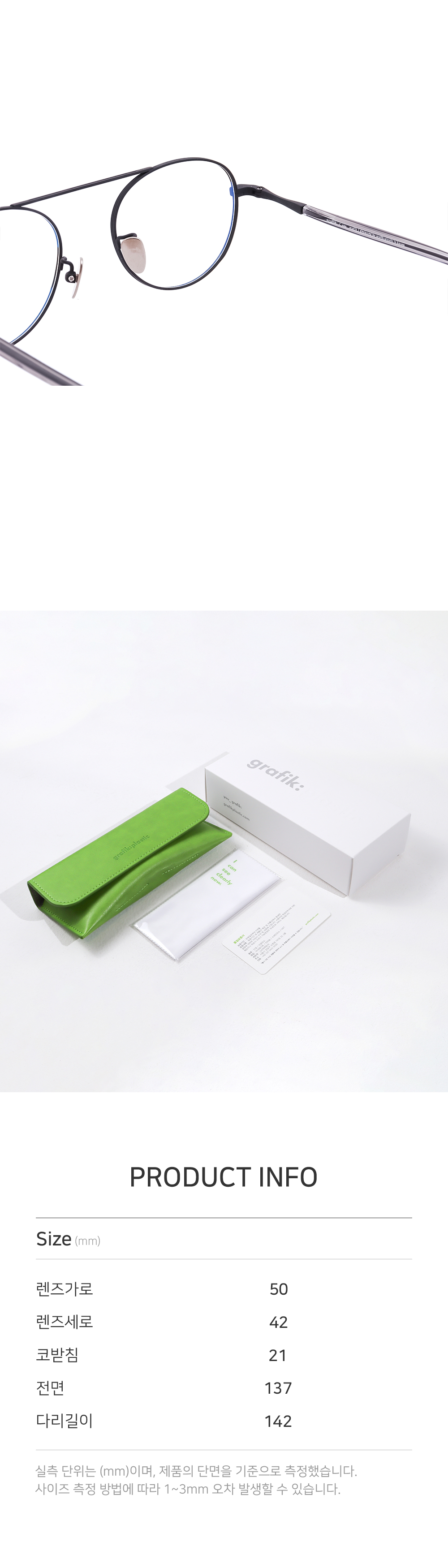 *안경테에 장착되어있는 렌즈는 프레임의 형태의 변형을 막기 위한 플라스틱 데모렌즈입니다.
