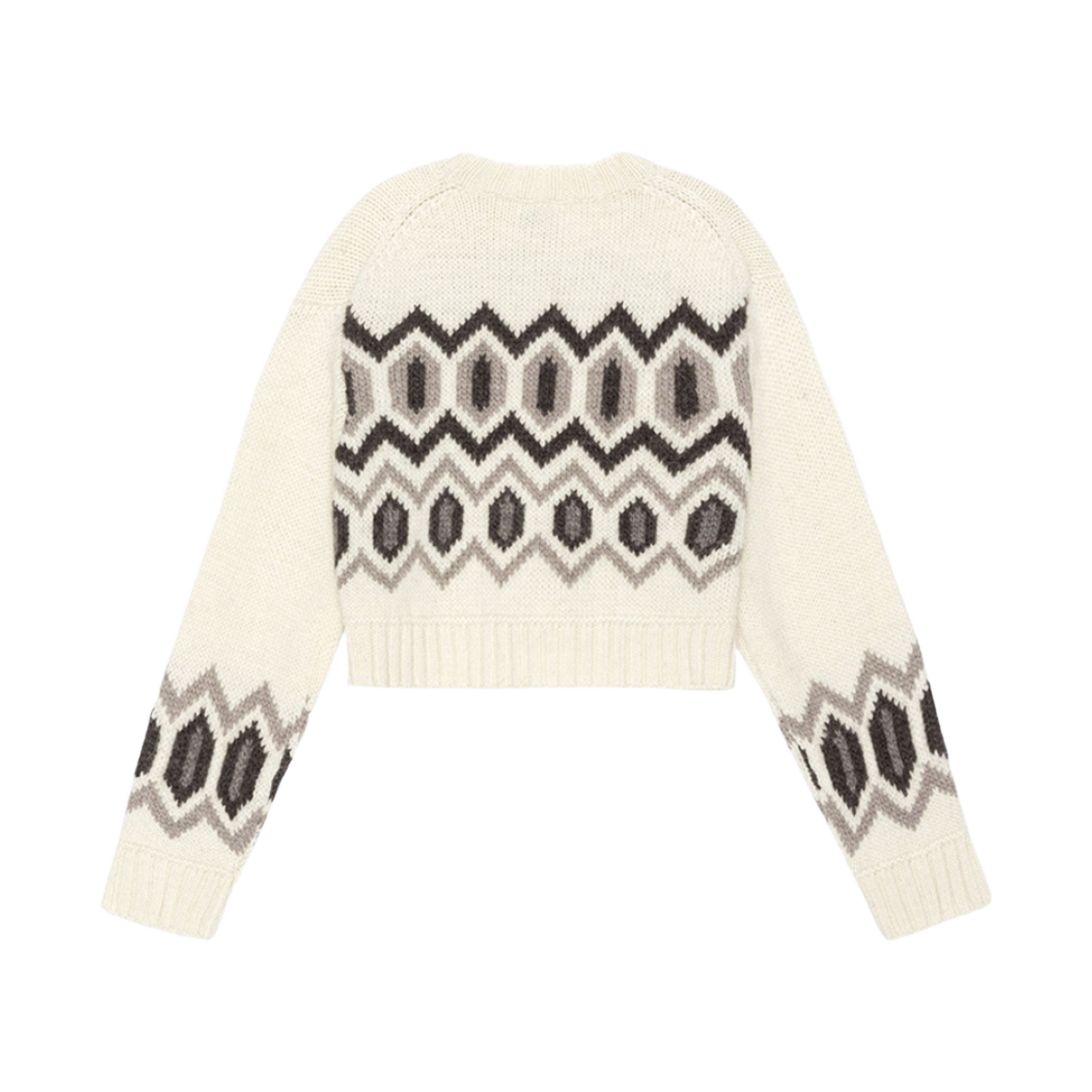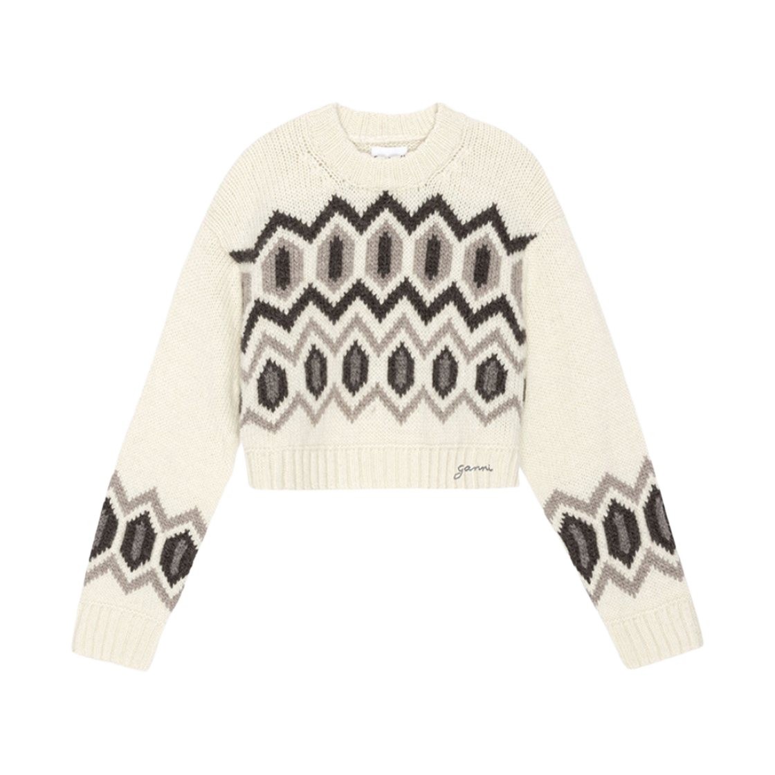 (W) Ganni Chunky Wool Cropped O-Neck Sweater Egret