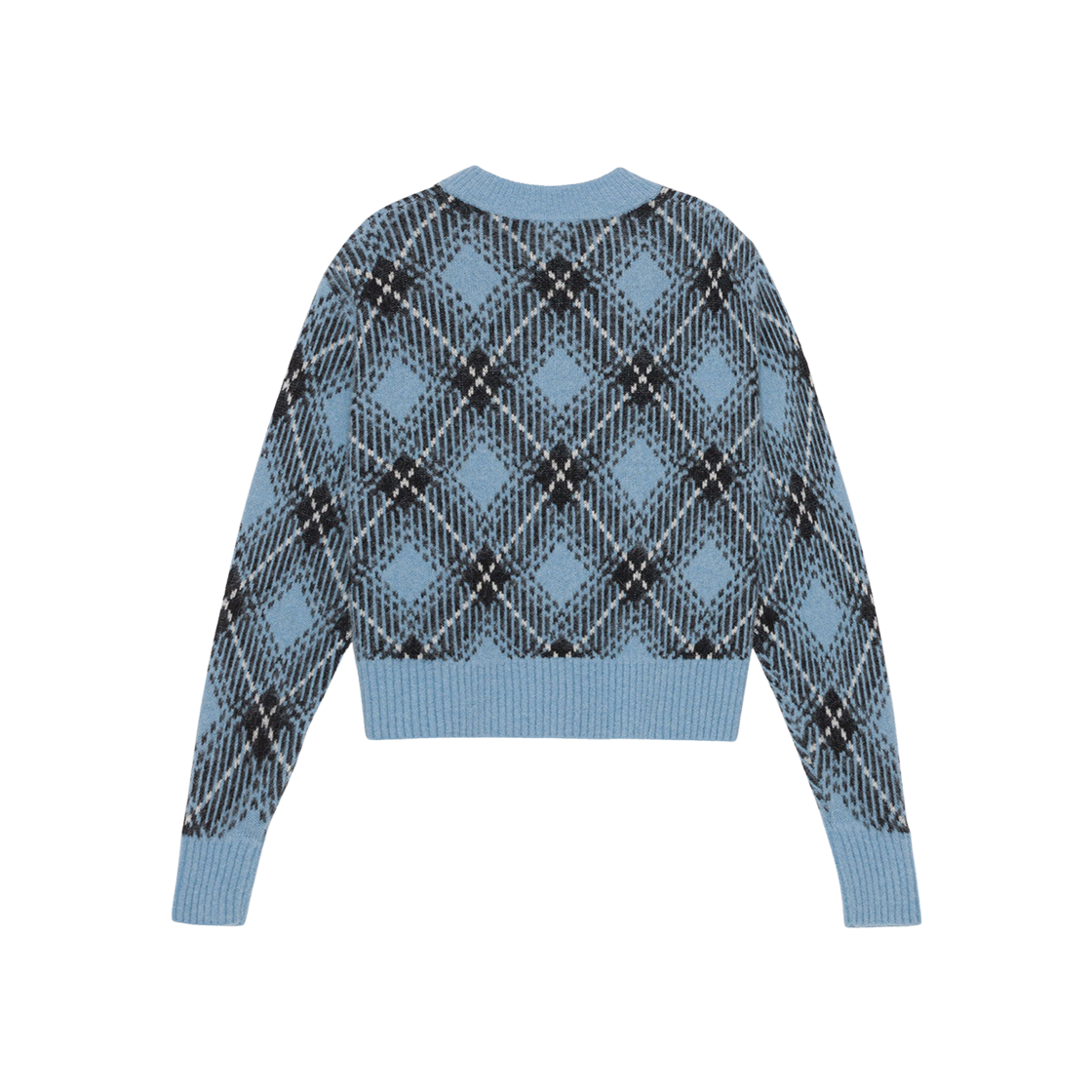 (W) 가니 체커드 오버사이즈 울 풀오버 실버 레이크 블루