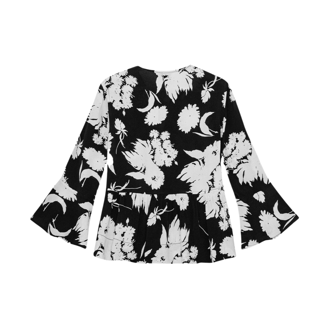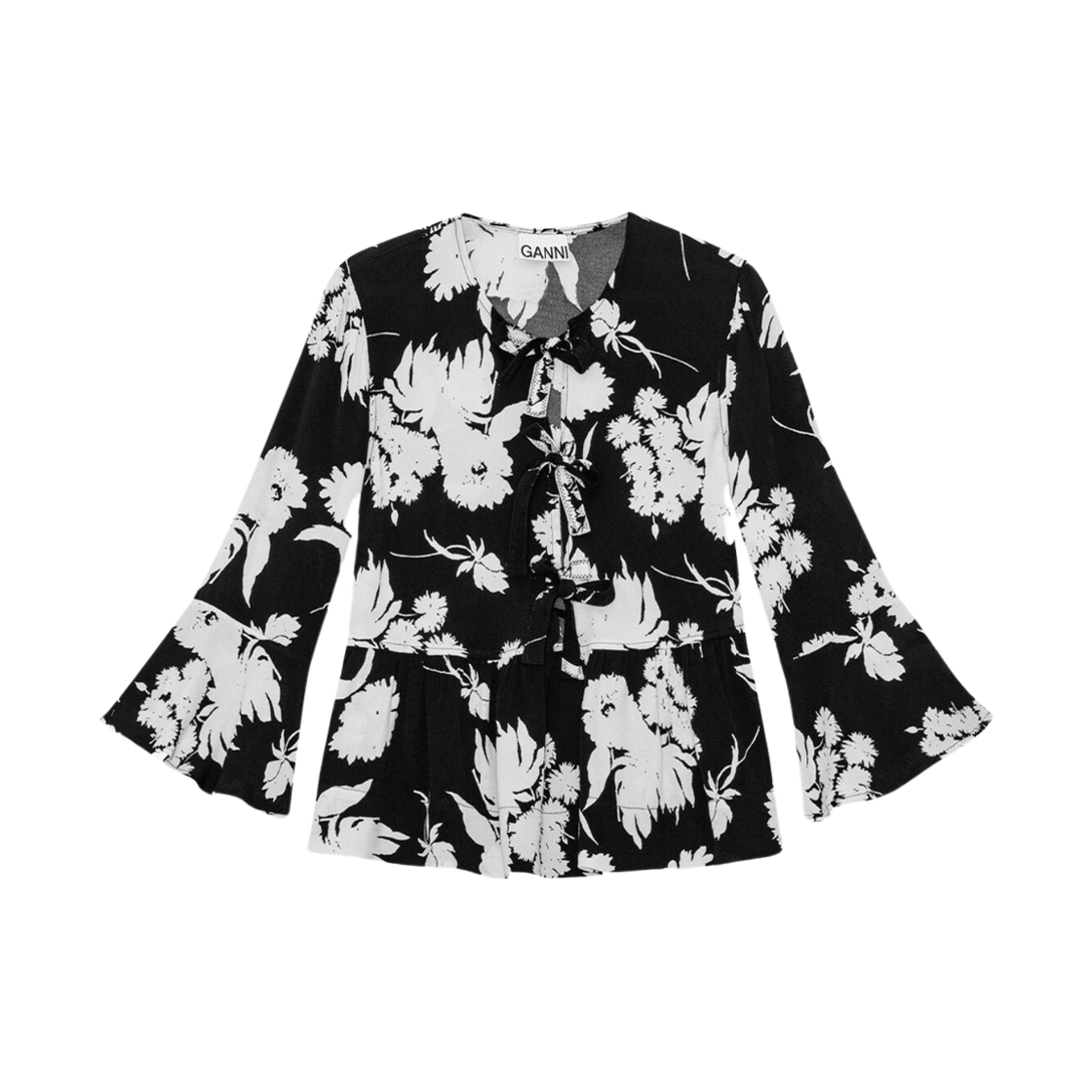 (W) 가니 프린티드 크레이프 페플럼 블라우스 블랙
