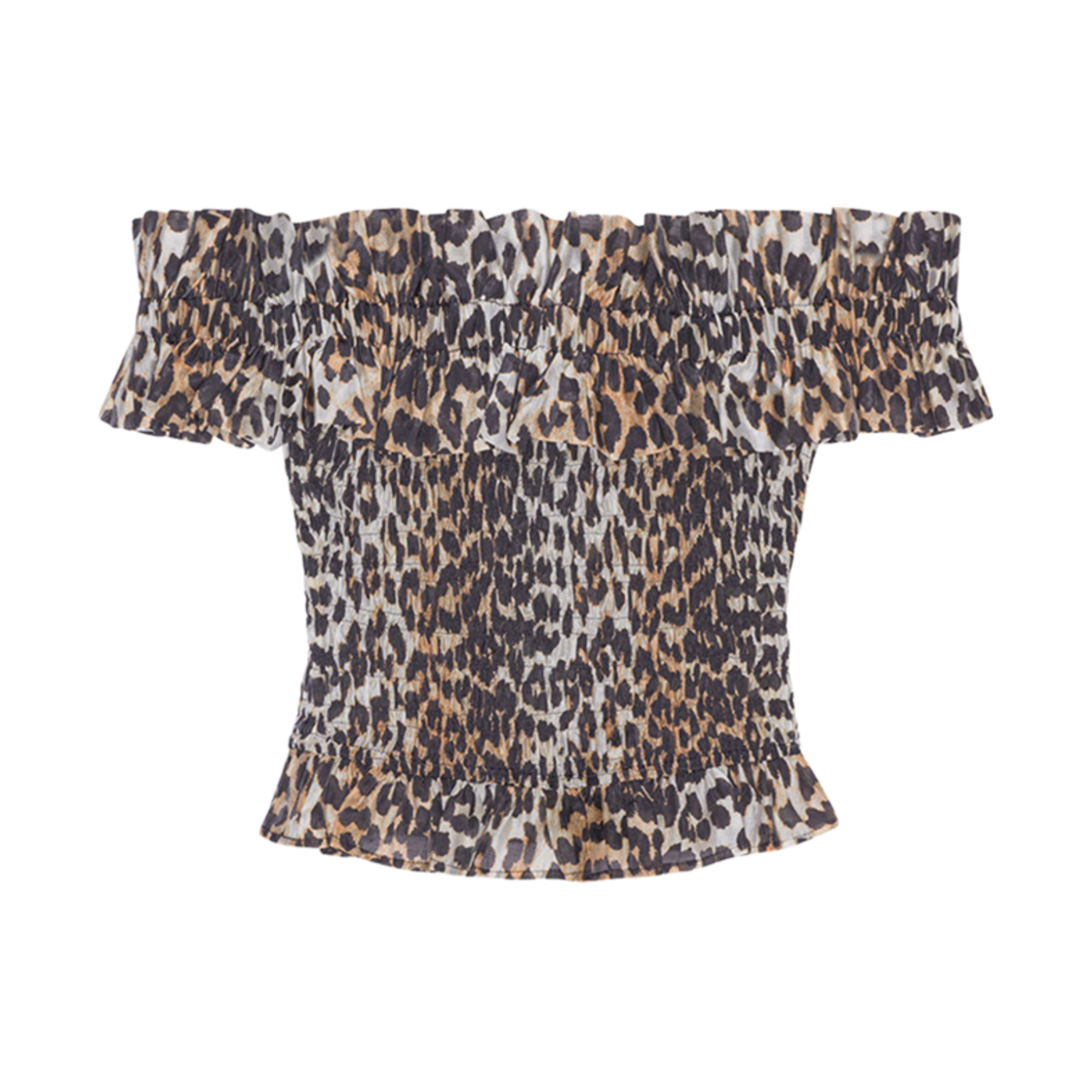 (W) 가니 시어 브왈라 크롭 오프숄더 스모크 탑 아몬드 밀크