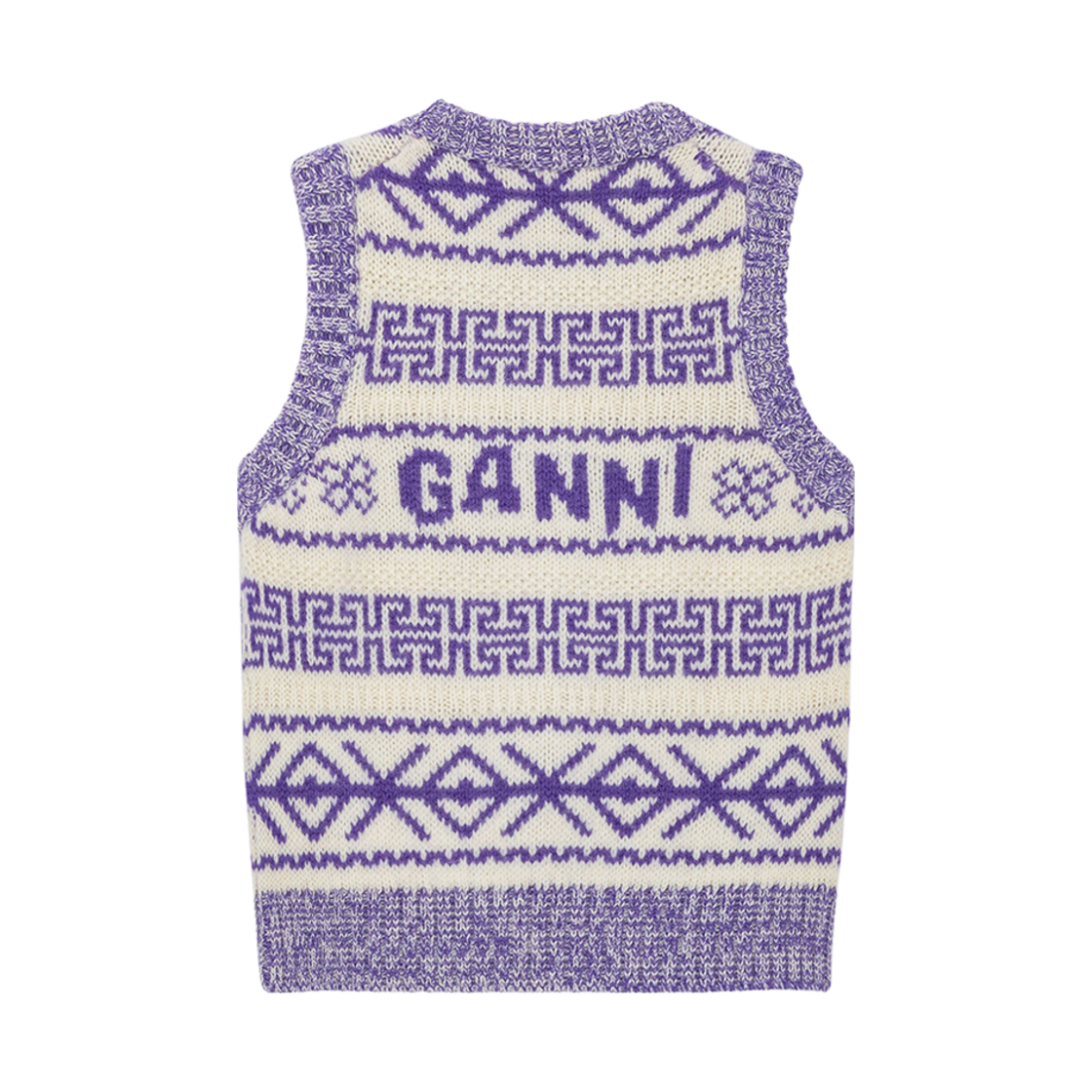 (W) Ganni Lambswool O-Neck Vest Simply Purple