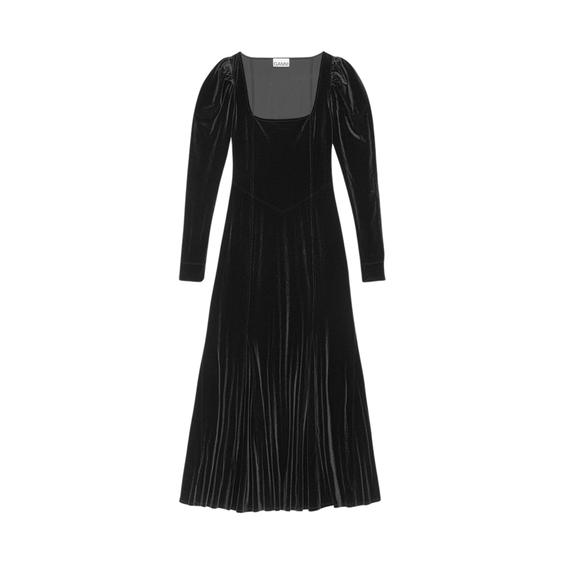 (W) Ganni Velvet Jersey Maxi Dress Black