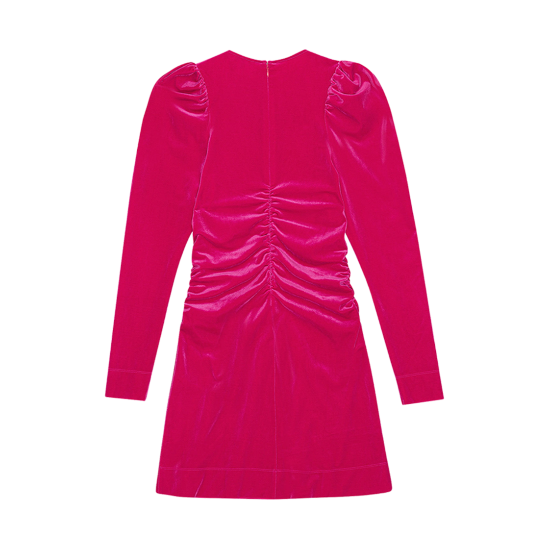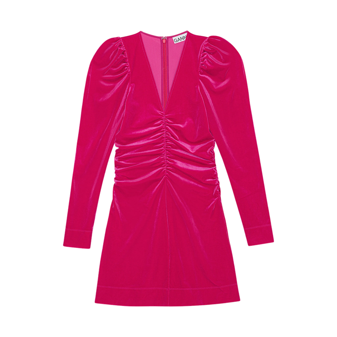 (W) Ganni Velvet Jersey Gathered Mini Dress Love Potion