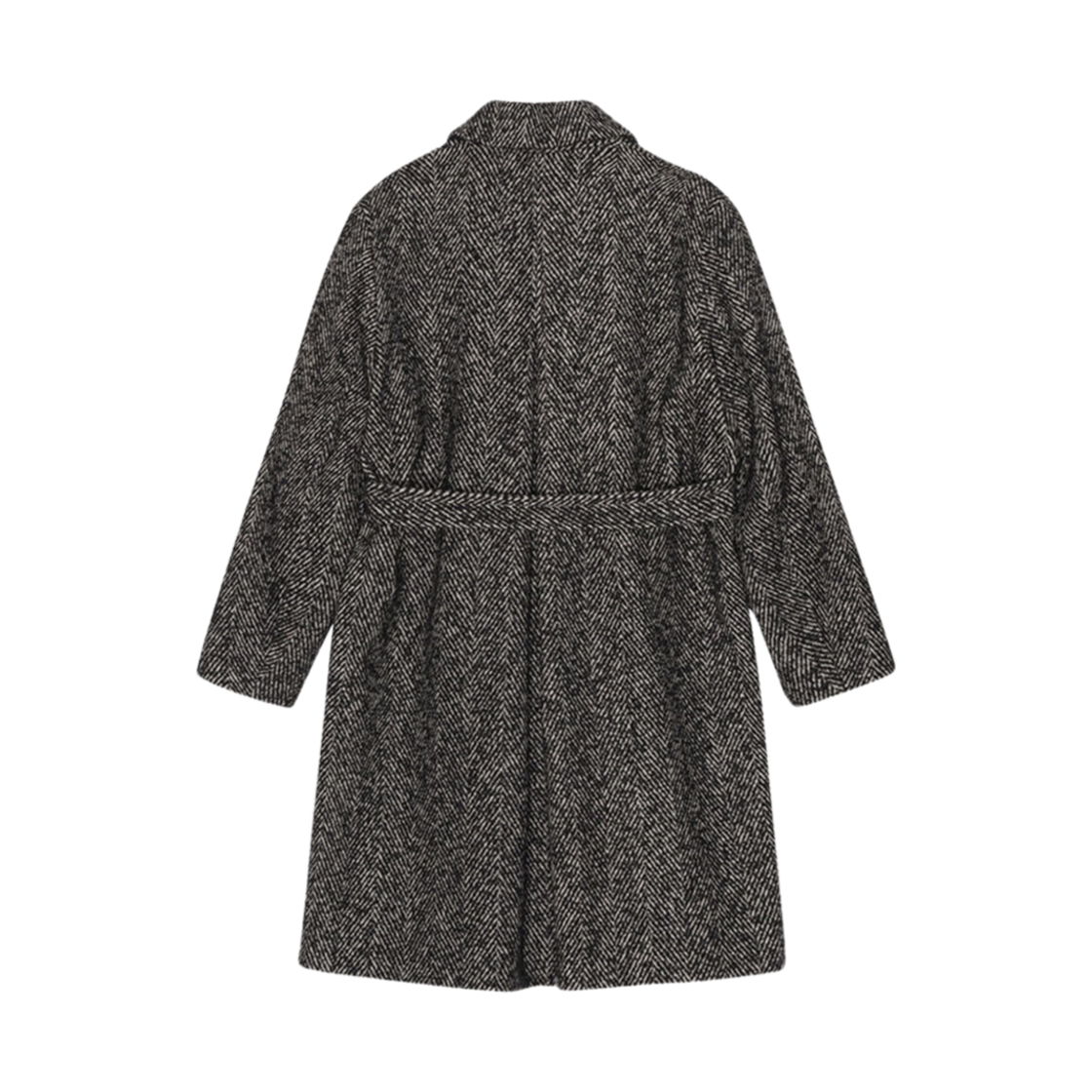 (W) 가니 헤링본 울 벨트 코트 블랙