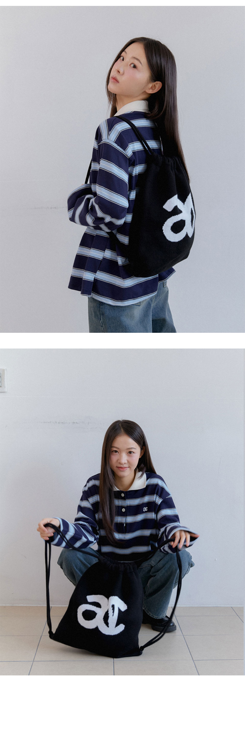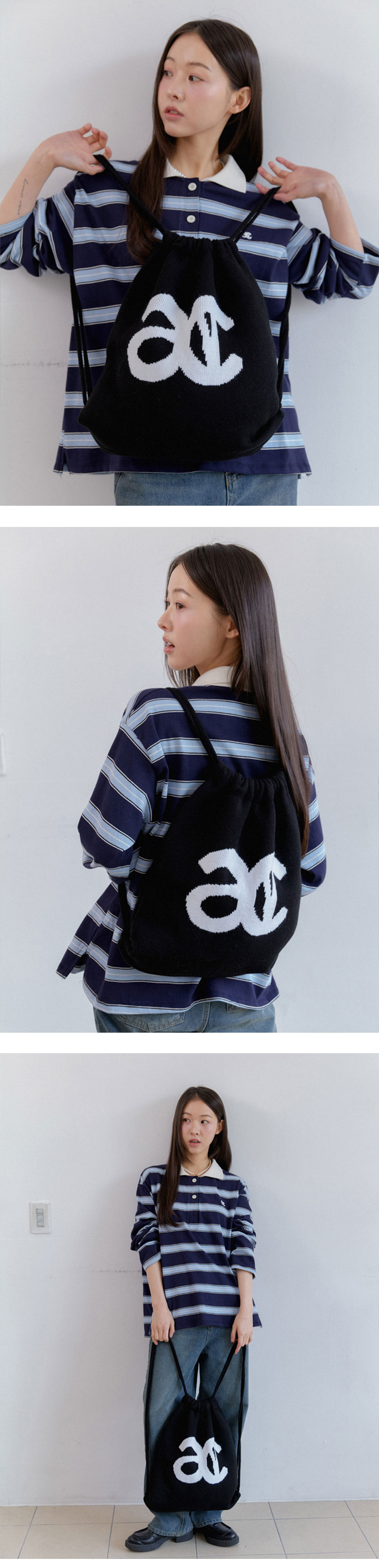 아노에틱 ANC 니트 로고 스트링 백팩 블랙