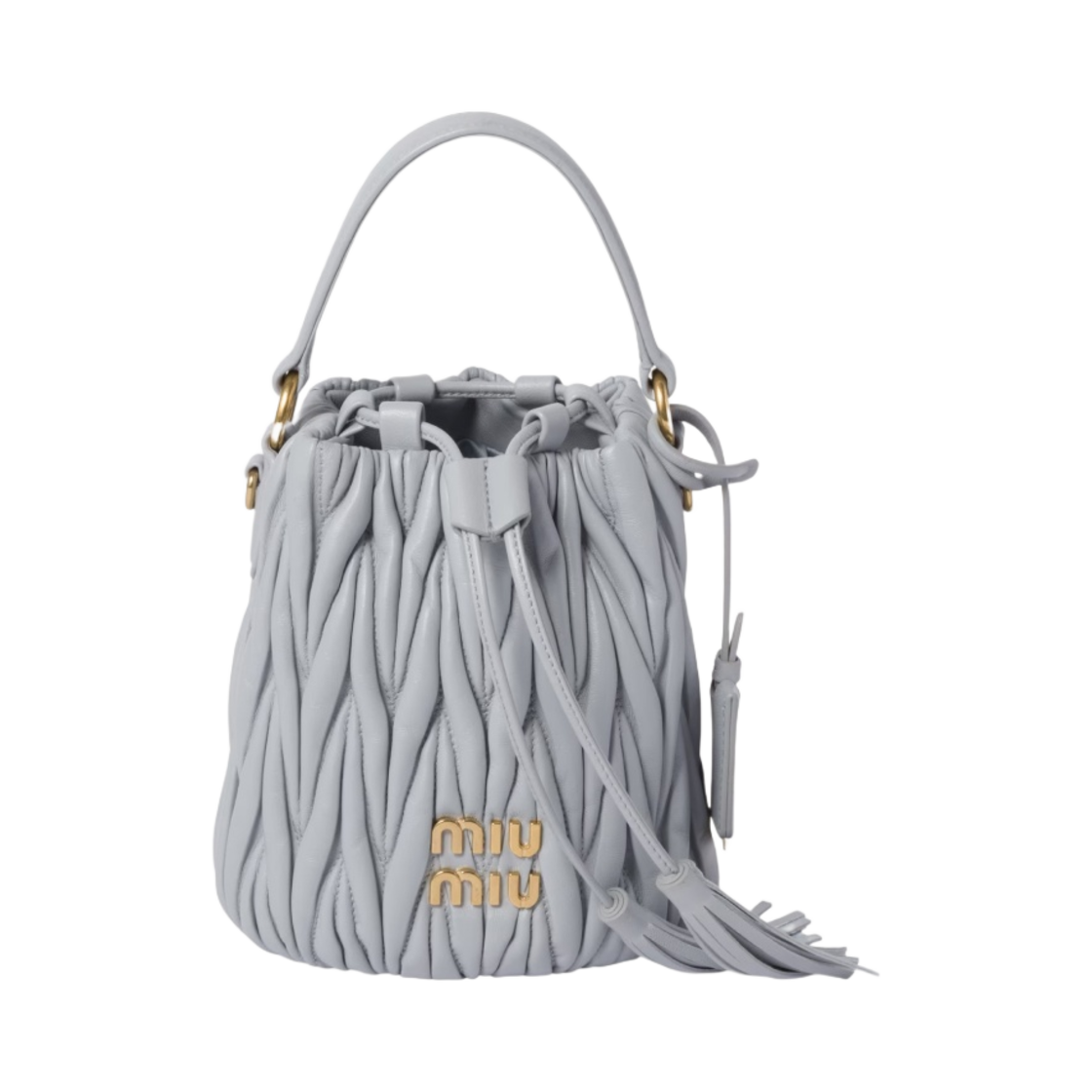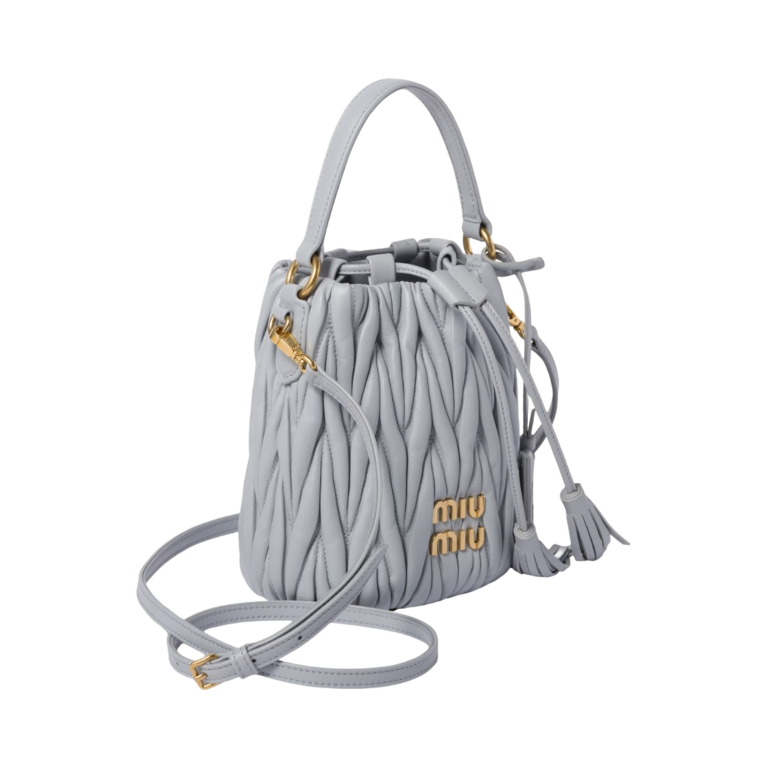 Miu Miu Matelasse Nappa Leather Bucket Bag Cornflower Blue