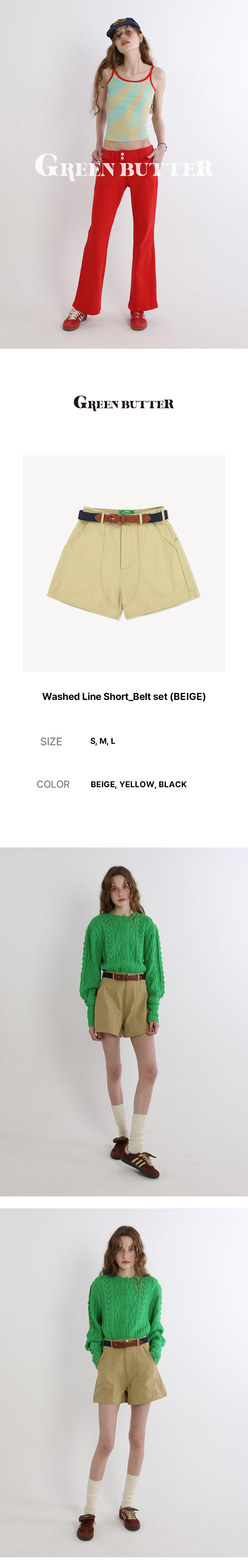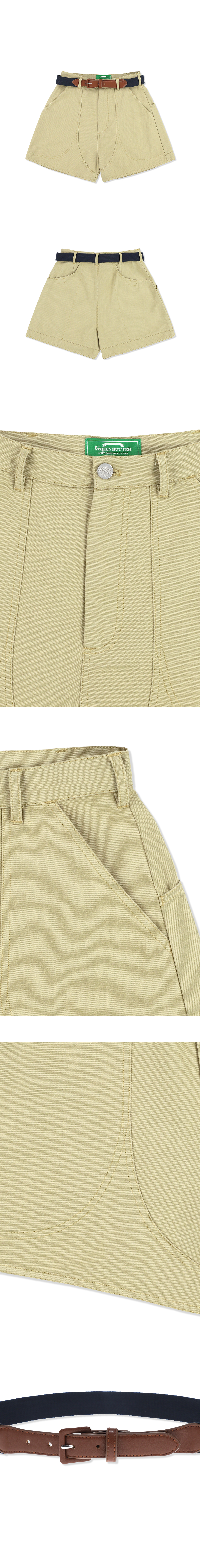 그린버터 우먼 워시드 라인 숏츠 벨트 세트 베이지