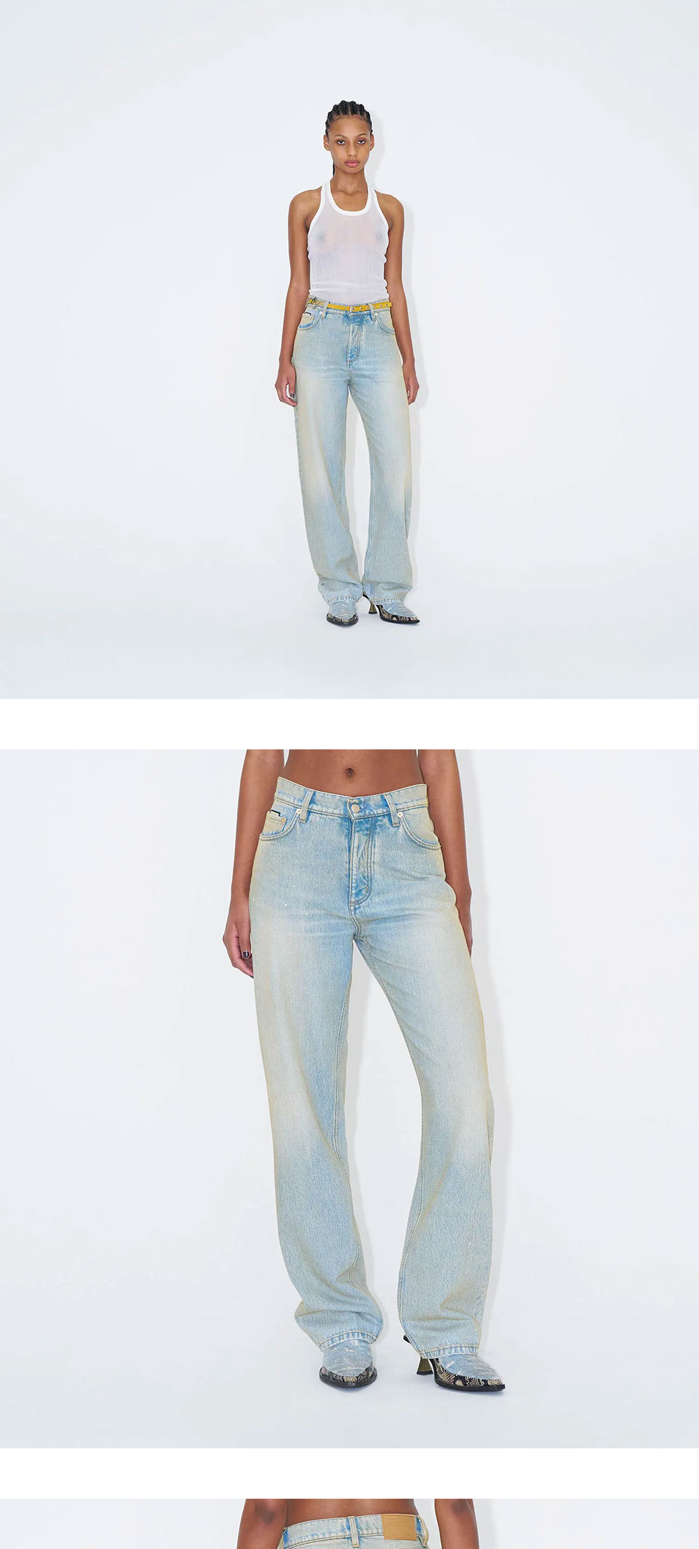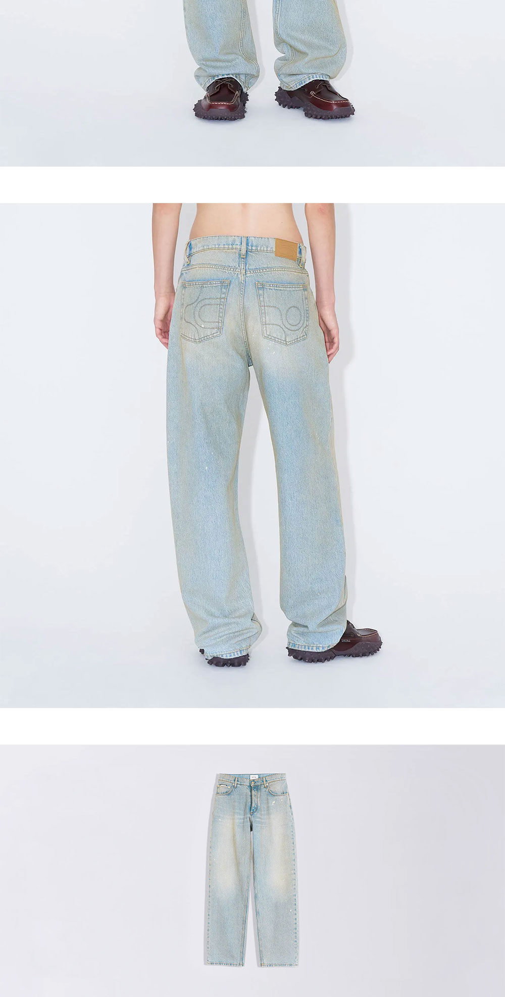 '벤즈'는 90년대 스타일을 연상시키며 아이코닉한 배기 실루엣을 현대적으로 재해석한 제품입니다. - 따뜻한 인디고 베이스와 브론즈 스프레이가 사용된 워싱 - 빈티지한 느낌 * 모델 신체 스펙 M: 188cm - 착용 사이즈 30 / W: 173cm - 착용 사이즈 26