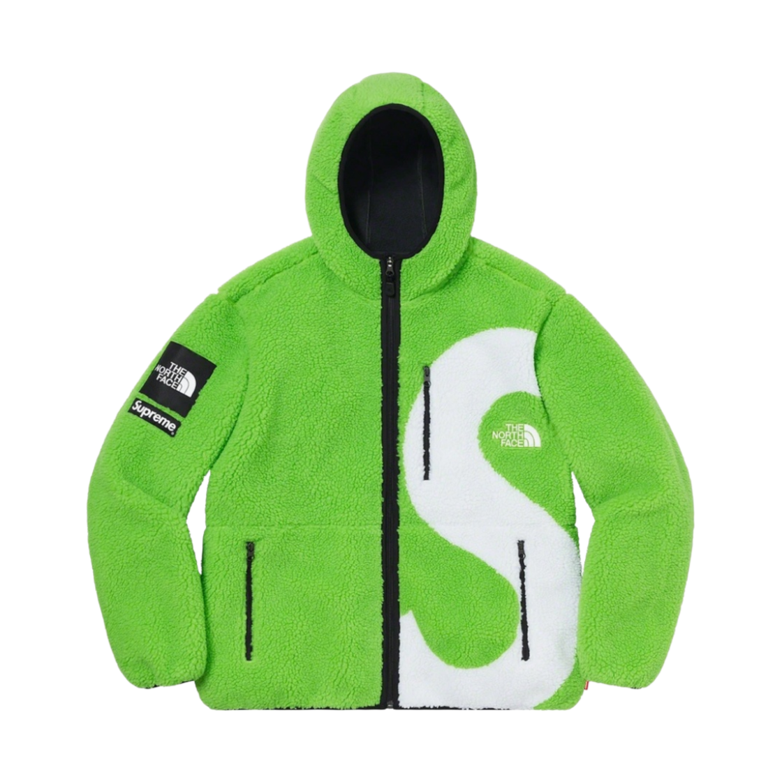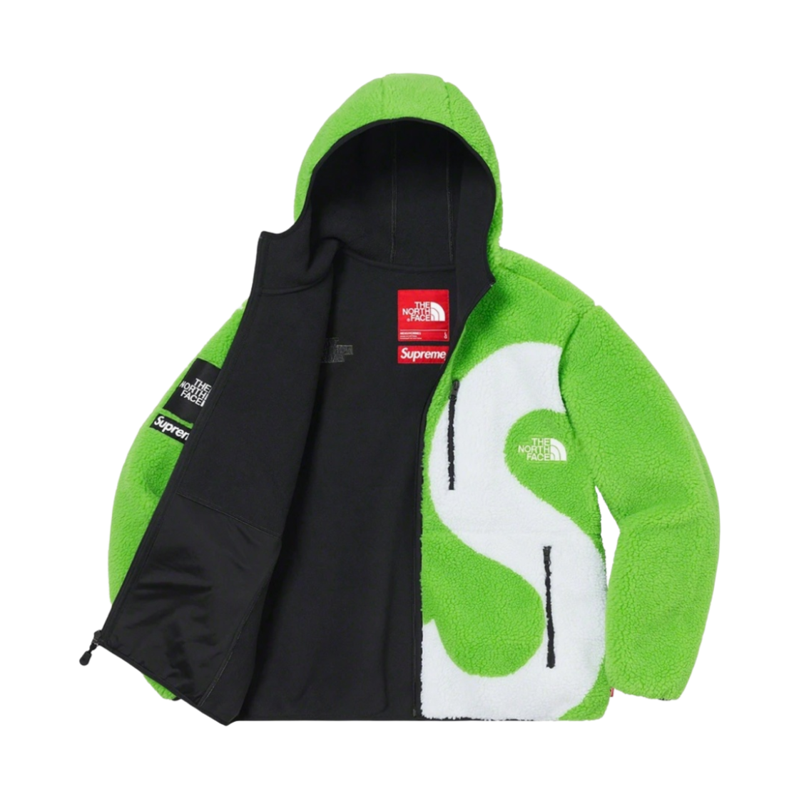 슈프림 x 노스페이스 S 로고 후드 플리스 자켓 라임 - 20FW
