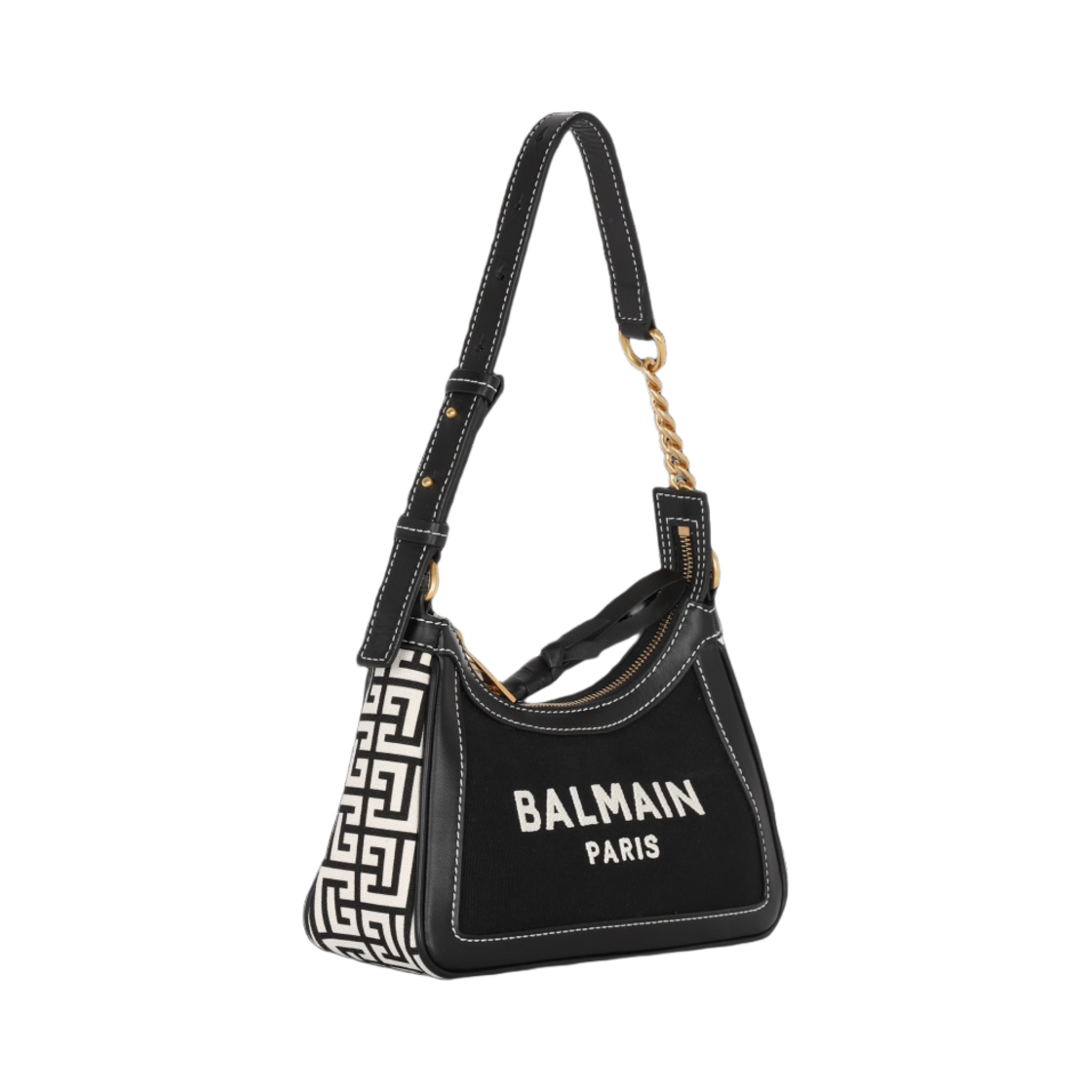 발망 B-아미 모노그램 캔버스 스무스 레더 핸드백 블랙