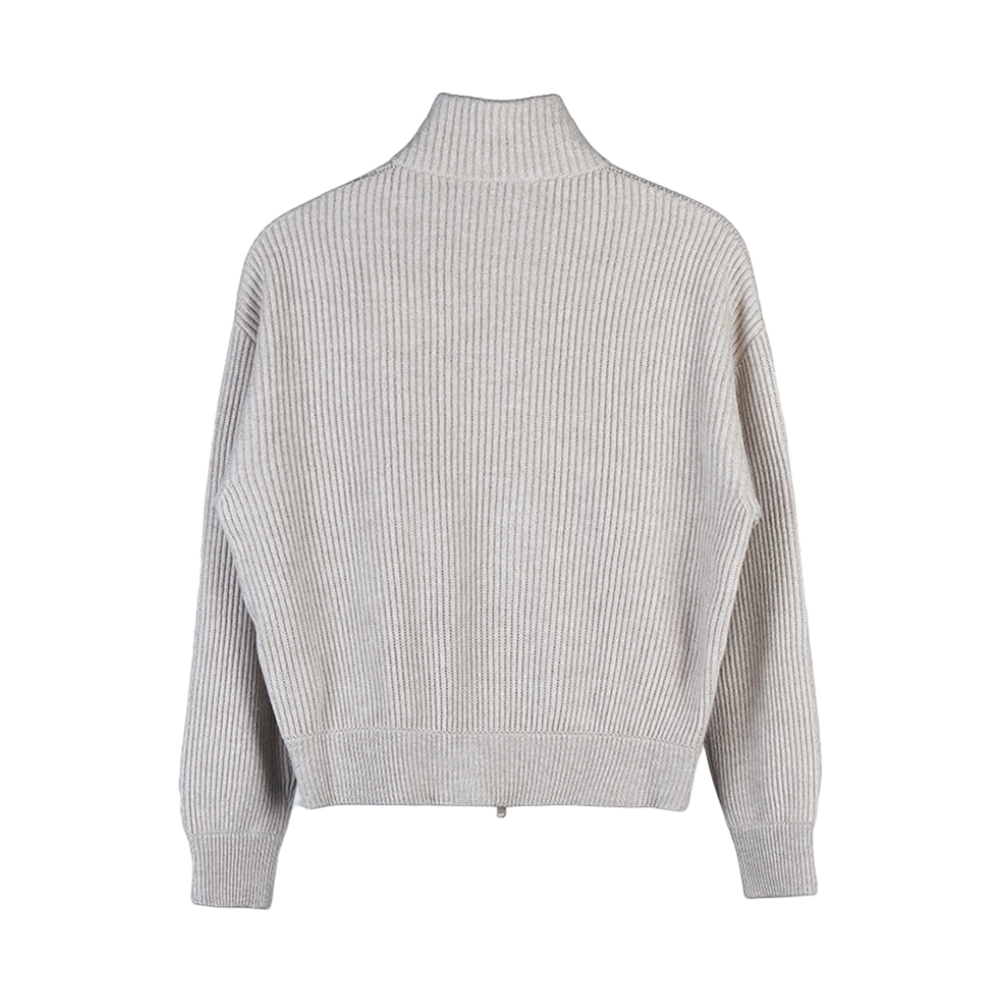 (W) Brunello Cucinelli Cashmere Knit Zip-Up Beige