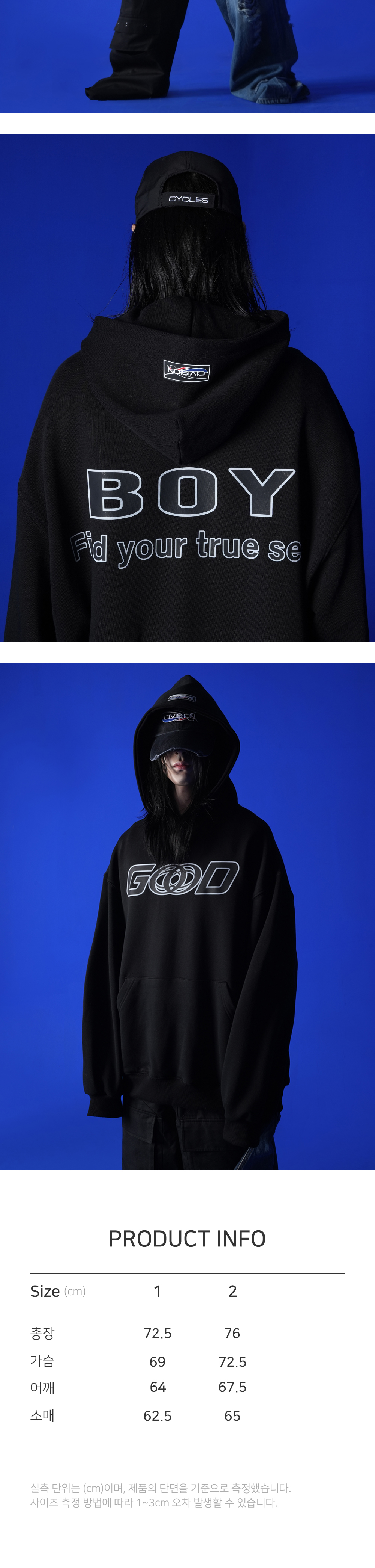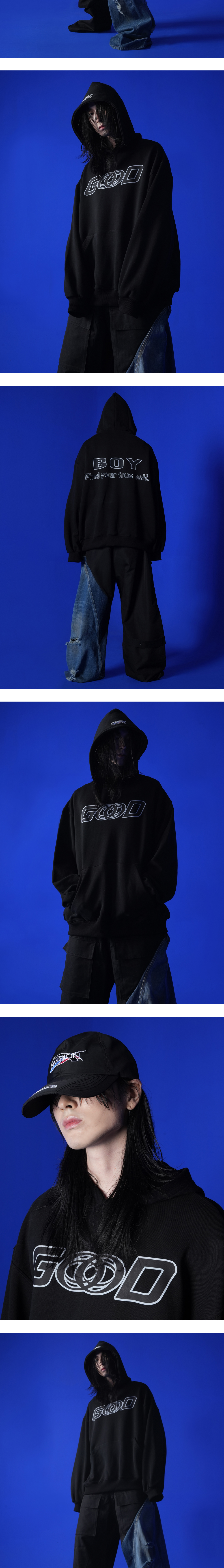 [PRODUCT INFORMATION] Material: Cotton 100% -Light weight Hoodie -Good vision boy graphic printed -Rubber logo at hood -Ribbed cuffs, hem -Semi oversized fit [Model Spec & Size] Man model is 181cm, and wearing a Size 2 Woman model is 170 cm, and wearing a Size 2