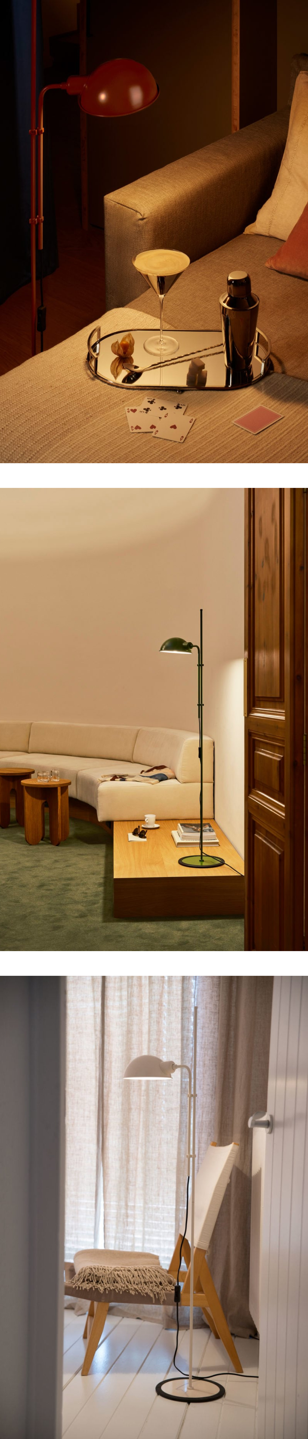 Lluís Porqueras는 디자인할 때 단순함을 추구하며 불필요한 요소를 제거하여 실용적이고 단순한 본질적인 요소를 중요시합니다.Funiculi는 사용자의 필요에 맞게 높이를 조절하고 조명 쉐이드를 360도 회전 시킬 수 있습니다.