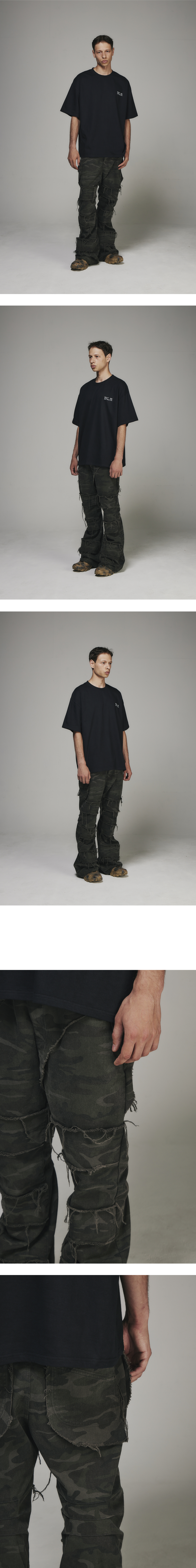 뒷판 허리 시그니처 로고 자수, 데님패치 디스트로이드 디테일 YKK지퍼 뒷판 턱 디테일