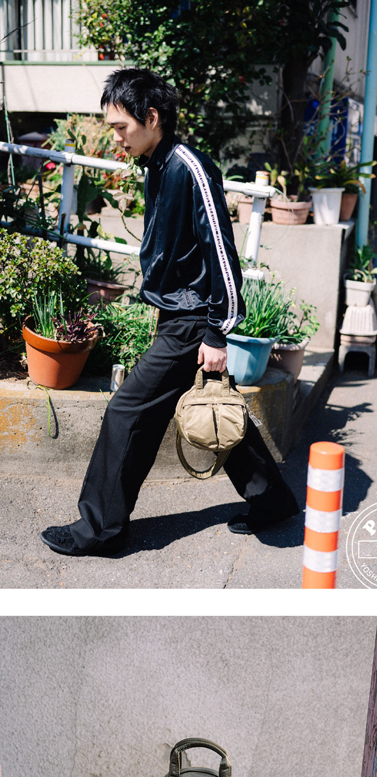 요시다 포터의 새로운 라인 "POTR"과 Beautiful People이 첫 콜라보레이션으로 선보이는 헬멧 백입니다. - 요시다 포터의 상징적인 헬멧 가방을 둥근 형상으로 변형한 디자인 - 원단과 동일한 색으로 도장된 금속 장식 - 뒷면의 POTR 실리콘 프린트 - 오리지널 로고 테이프