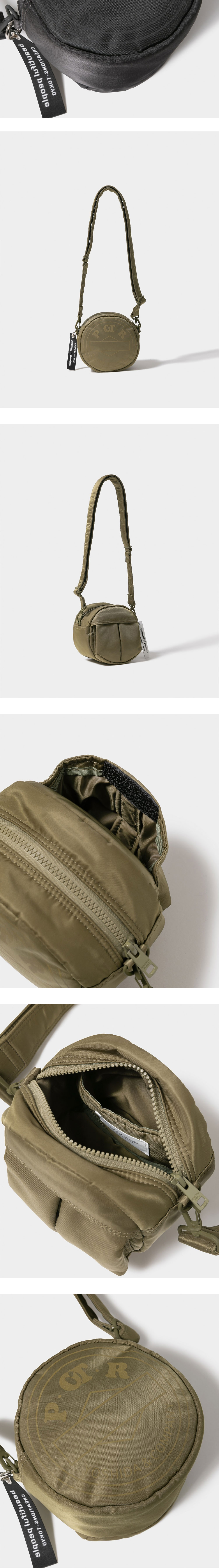 요시다 포터의 새로운 라인 "POTR"과 Beautiful People이 첫 콜라보레이션으로 선보이는 숄더 백입니다. - 요시다 포터의 상징적인 헬멧 가방을 둥근 형상으로 변형한 디자인 - 원단과 동일한 색으로 도장된 금속 장식 - 뒷면의 POTR 실리콘 프린트 - 오리지널 로고 테이프