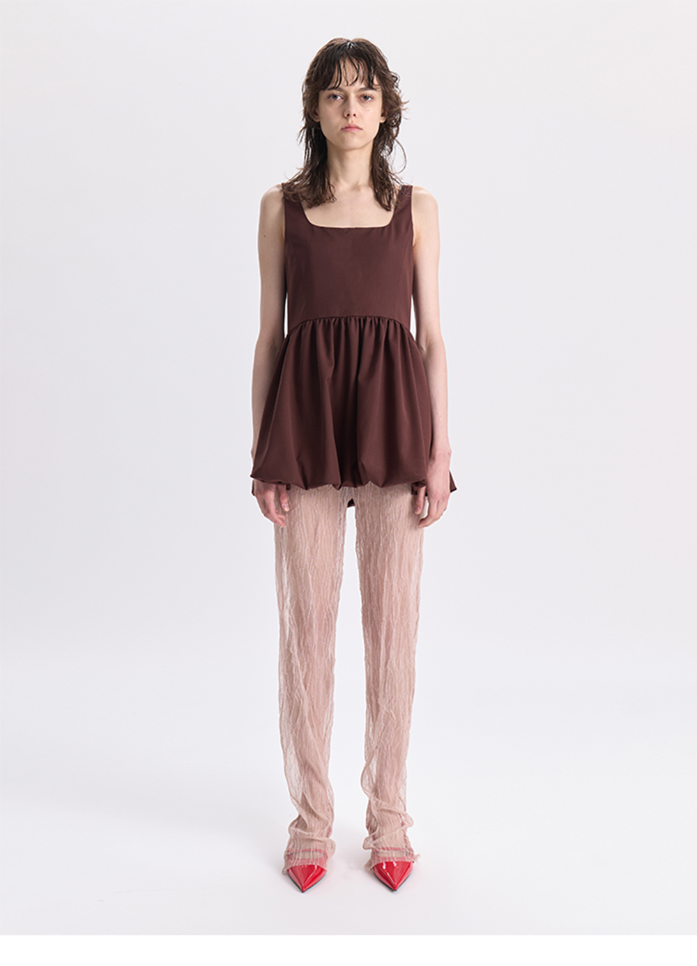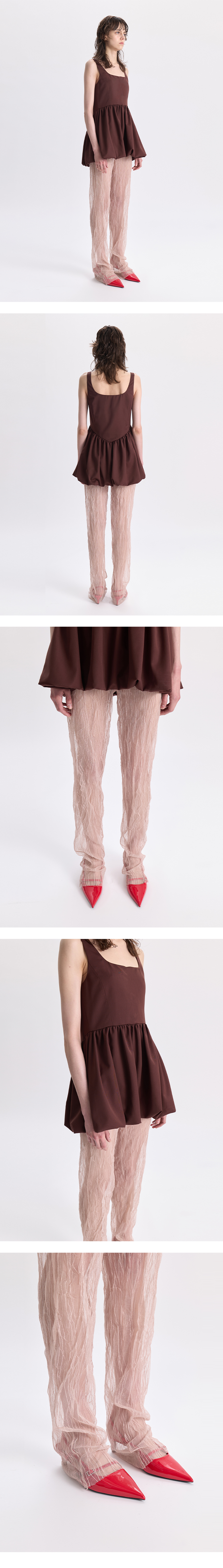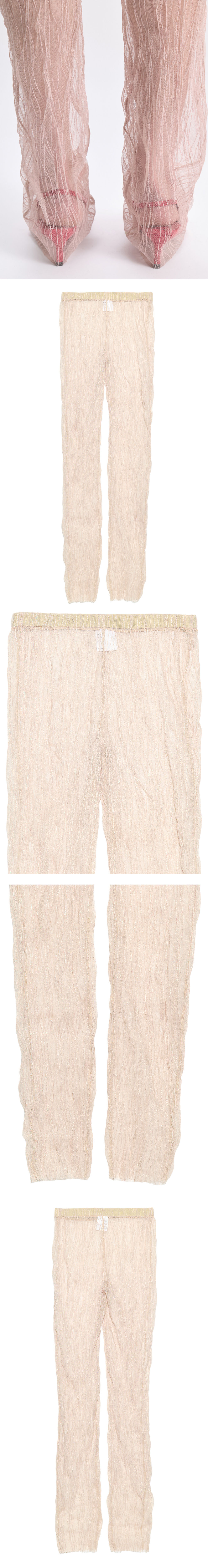 - 쉬어한 소재의 레이어드가 용이한 슬림팬츠<br><br> - 원단 주름가공으로 다양한 사이즈 착용 가능<br> - 허리 밴딩 마감<br> - 밑단 기장에 맞춰 컷팅하여 착용 가능<br> - 편안한 착용감의 레귤러 핏의 실루엣<br><br> * Shell : 100% Polyester<br><br> * Made in Korea<br><br> * Model - 173cm / One Size<br>