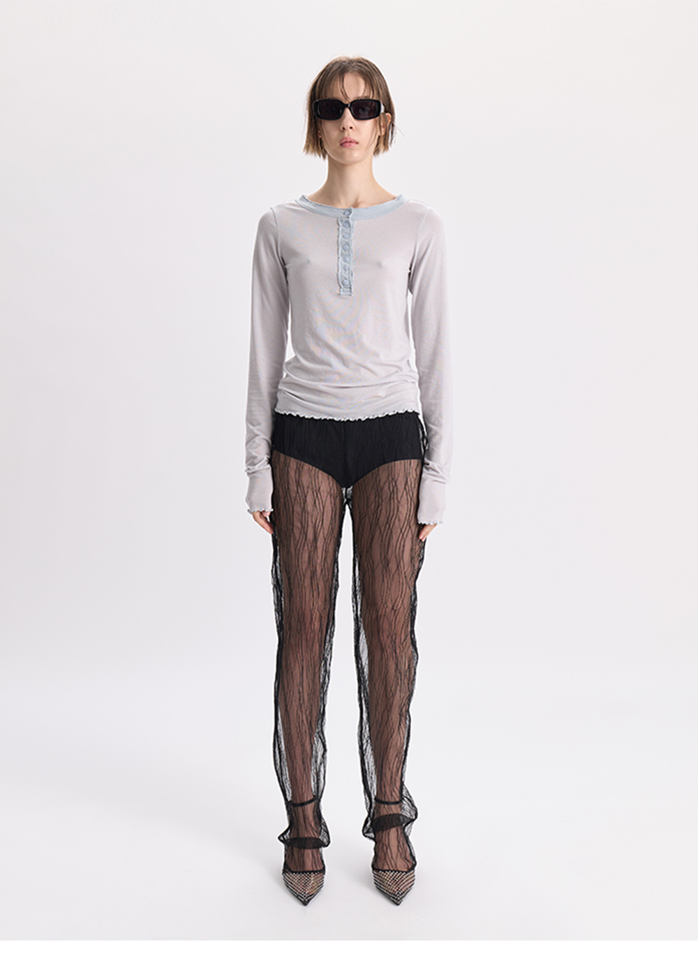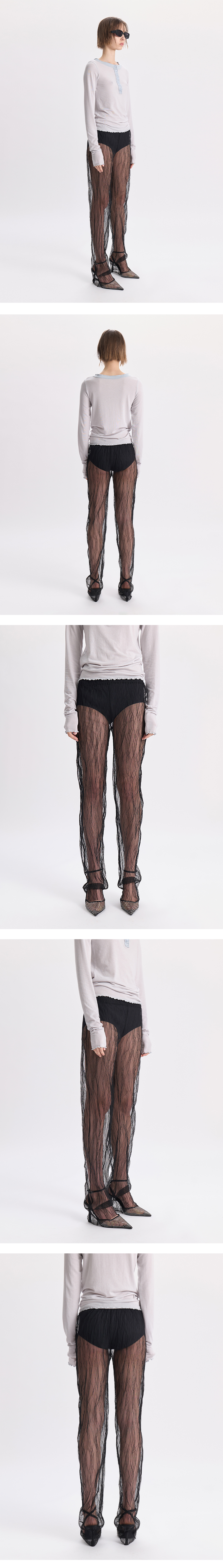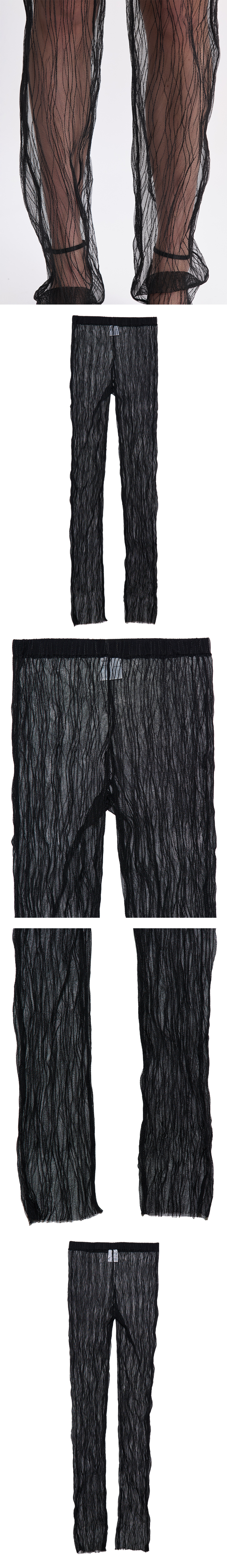 - 쉬어한 소재의 레이어드가 용이한 슬림팬츠<br><br> - 원단 주름가공으로 다양한 사이즈 착용 가능<br> - 허리 밴딩 마감<br> - 밑단 기장에 맞춰 컷팅하여 착용 가능<br> - 편안한 착용감의 레귤러 핏의 실루엣<br><br> * Shell : 100% Polyester<br><br> * Made in Korea<br><br> * Model - 174cm / One Size<br>