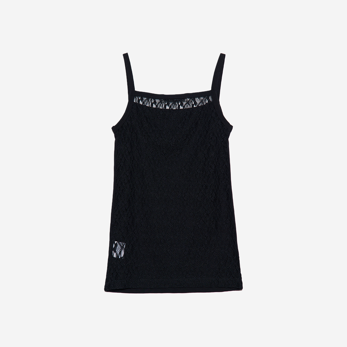 - 전면과 후면의 원단이 믹스된 슬리브리스<br><br> - 전면 Gyeong로고 나염 디테일<br> - 후면 레이스 원단 사용<br> - 타이트한 실루엣<br><br> * Shell 1 : 82% Cotton, 18% Span<br><br> * Shell 2 : 95% Nylon, 5% Span<br><br> * Made in Korea<br><br> * Model - 173cm / One Size<br>