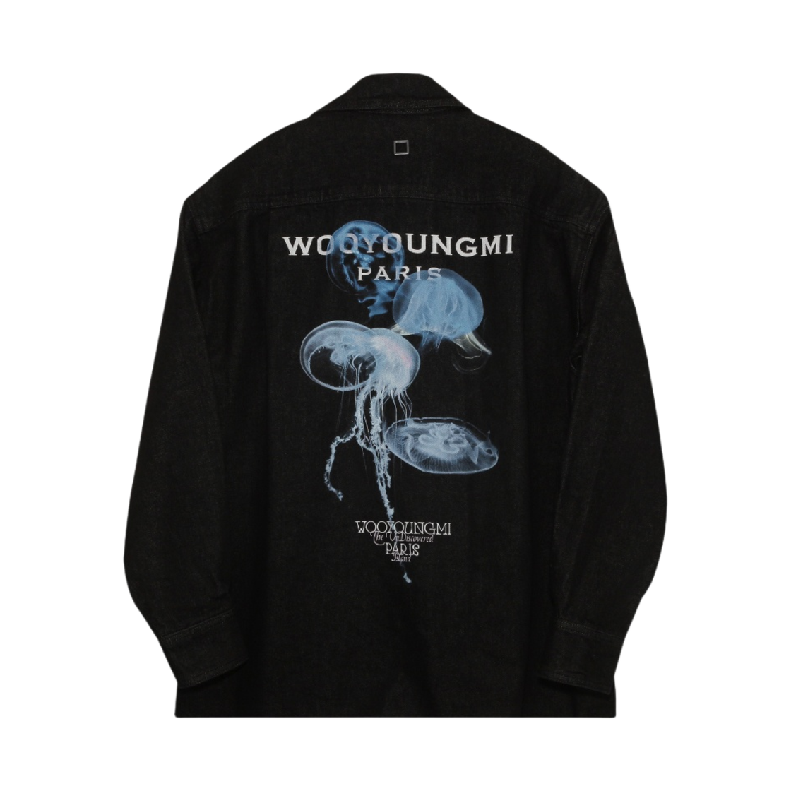Wooyoungmi Jellyfish Back Logo Denim Shirt Dark Gray - 24SS