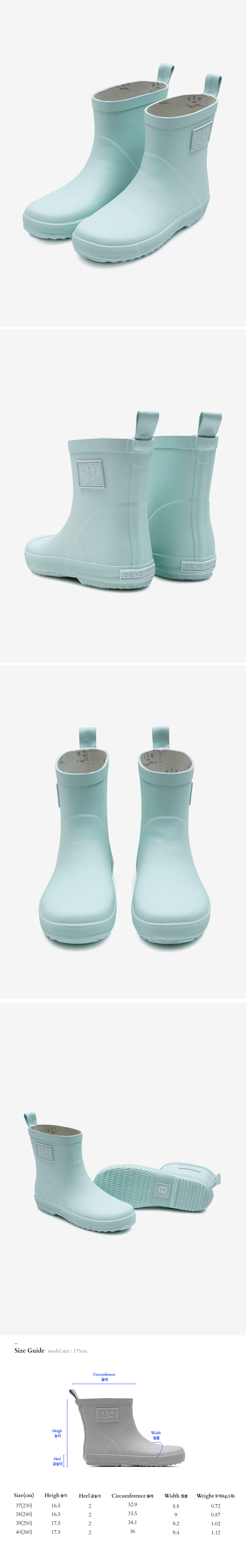벤시몽 비에스엠 레인부츠 로우 파스텔 민트