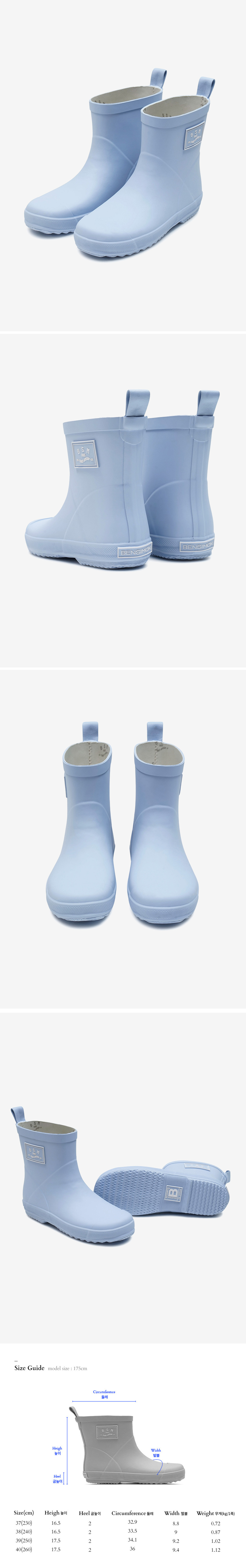 벤시몽 비에스엠 레인부츠 로우 스톰 블루
