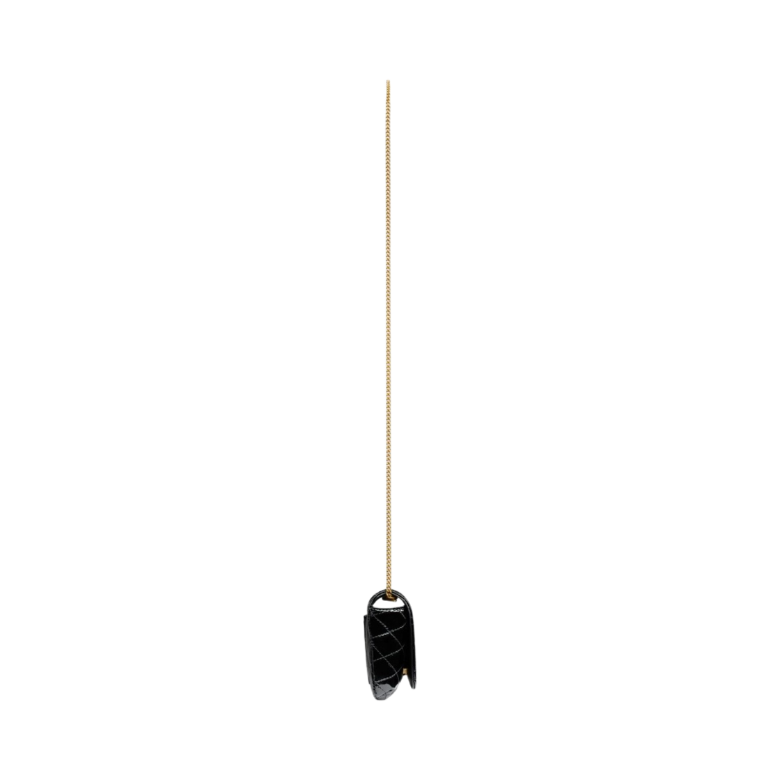 Saint Laurent Gaby Chain Phone Holder in Quilted Patent Leather Black