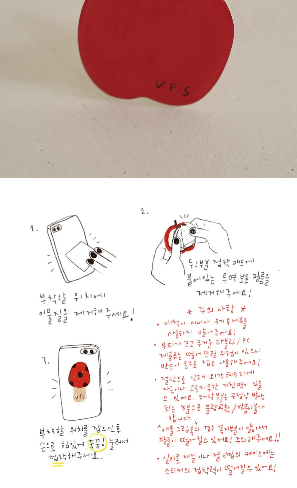*"애플 폰 그립"의 경우 꼭지부분이 얇아서 필름이 떨어질 수 있습니 주의바랍니다.*실리콘 재질이나 젤 타입의 케이스는 스티커의 접착력이 떨어질 수 있습니다.