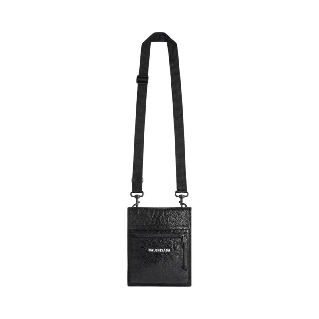 발렌시아가 익스플로러 스몰 파우치 로고 스트랩 블랙