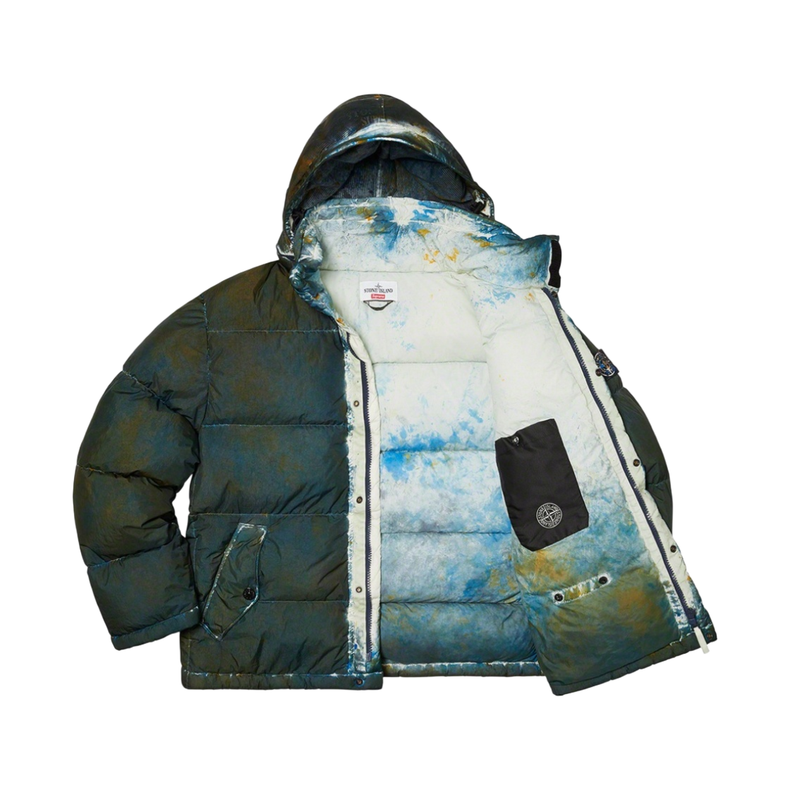 슈프림 x 스톤 아일랜드 페인티드 카모 크링클 다운 자켓 다크 틸 - 20FW