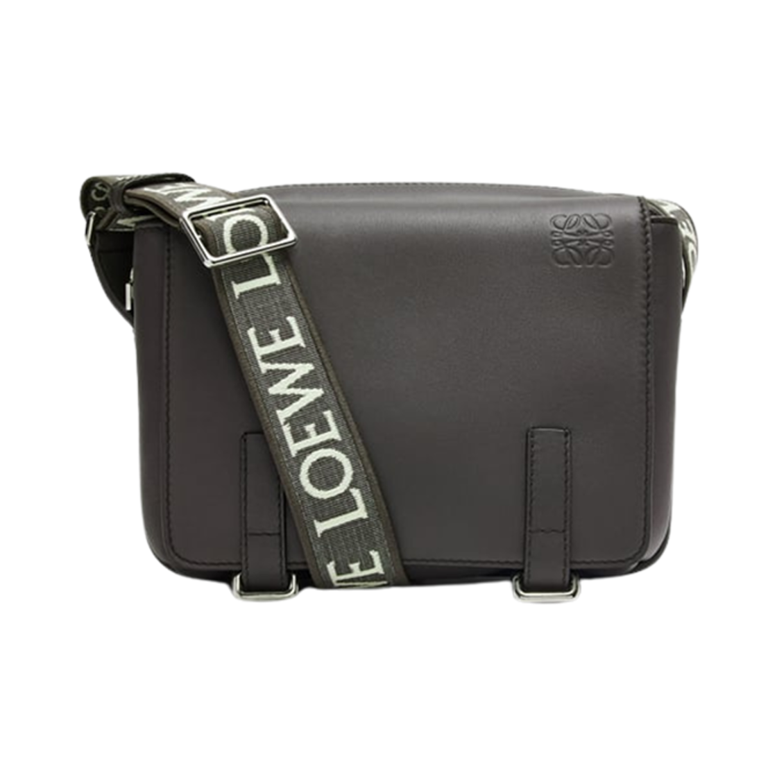 Loewe XS Military Messenger Bag in Supple Smooth Calfskin Jacquard Dark Grey