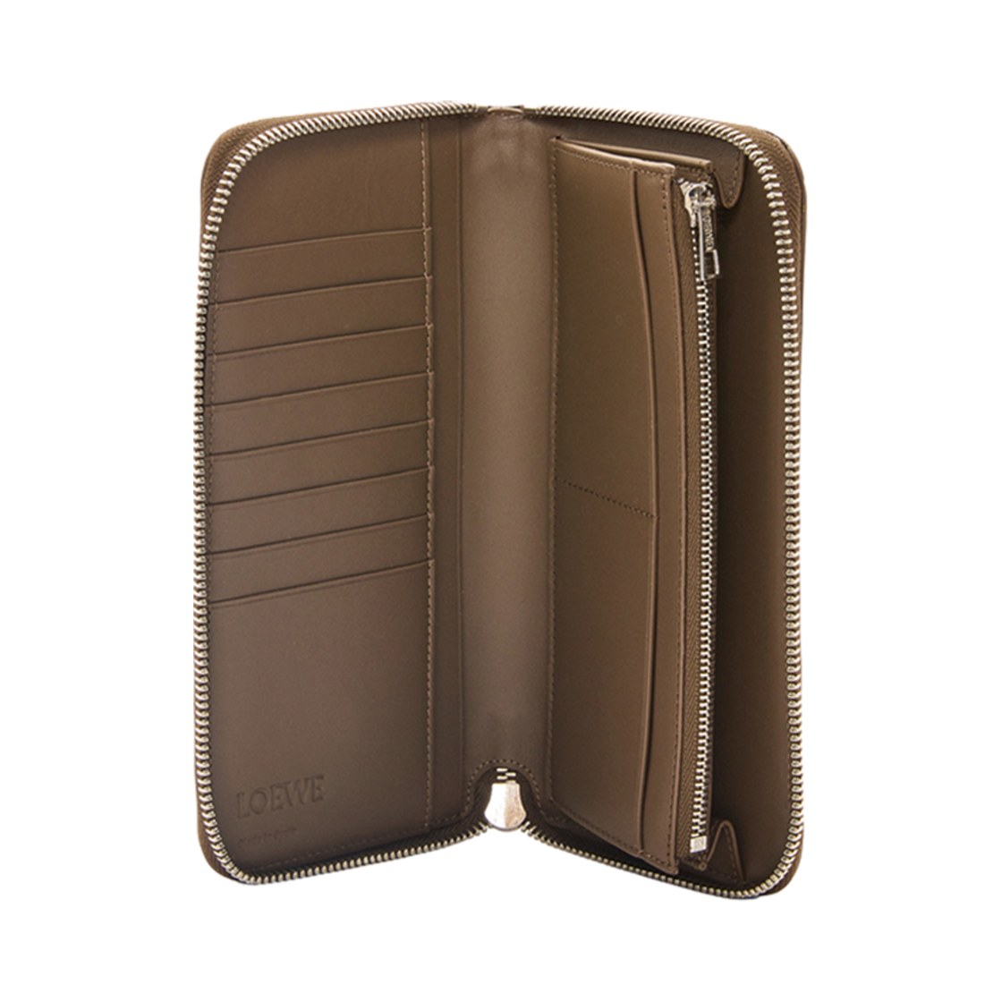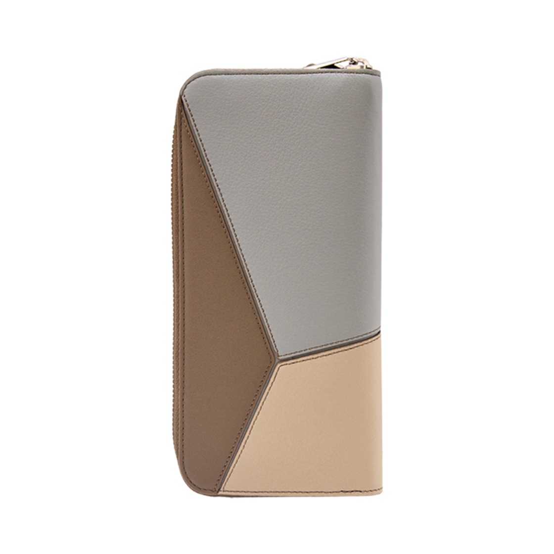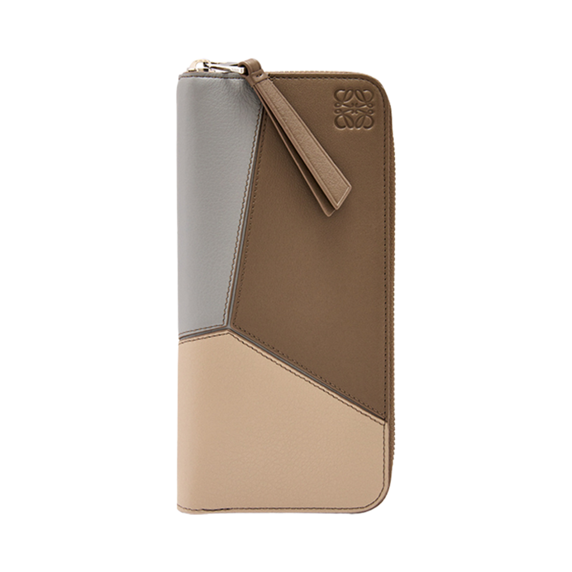 Loewe Puzzle Zipped Open Wallet in Classic Calfskin Asphalt Grey Winter Brown