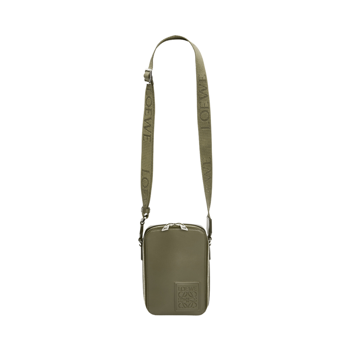 Loewe Vertical Crossbody Pocket In Satin Calfskin Khaki Green