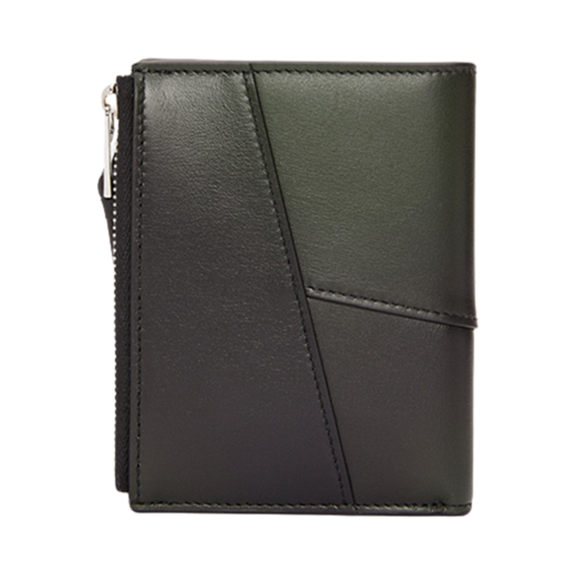 로에베 퍼즐 슬림 컴팩트 월렛 실크 카프스킨 보틀 그린