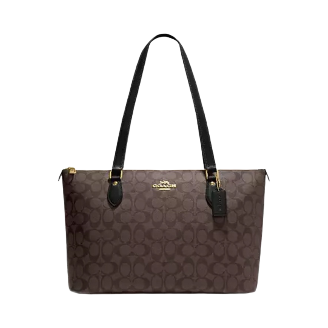 코치 시그니처 캔버스 갤러리 토트 브라운 블랙