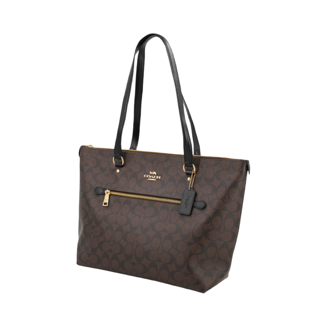 코치 시그니처 캔버스 갤러리 토트 브라운 블랙