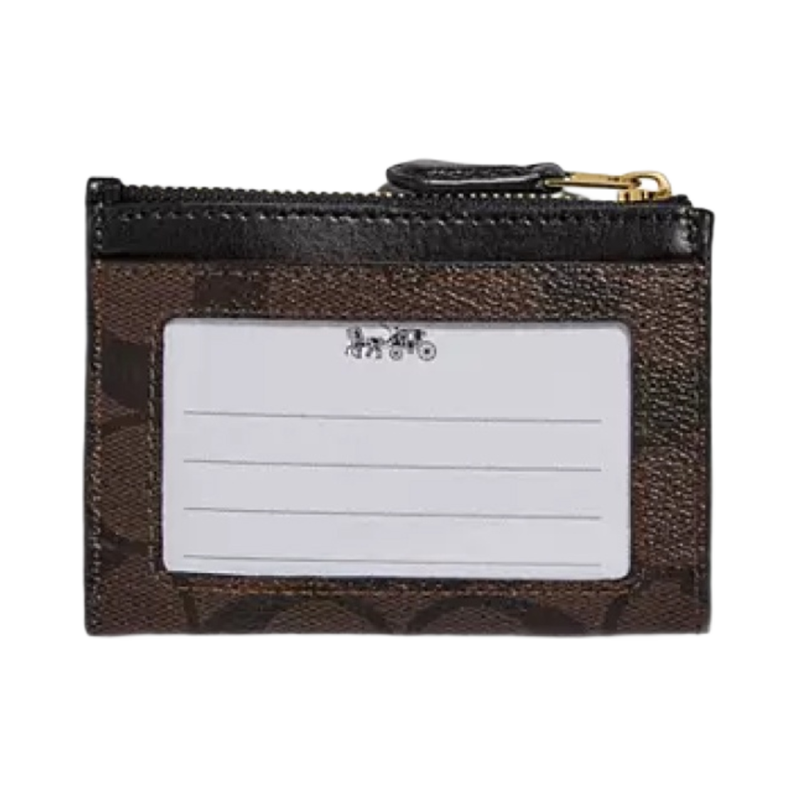 코치 시그니처 캔버스 미니 스키니 ID 케이스 브라운 블랙