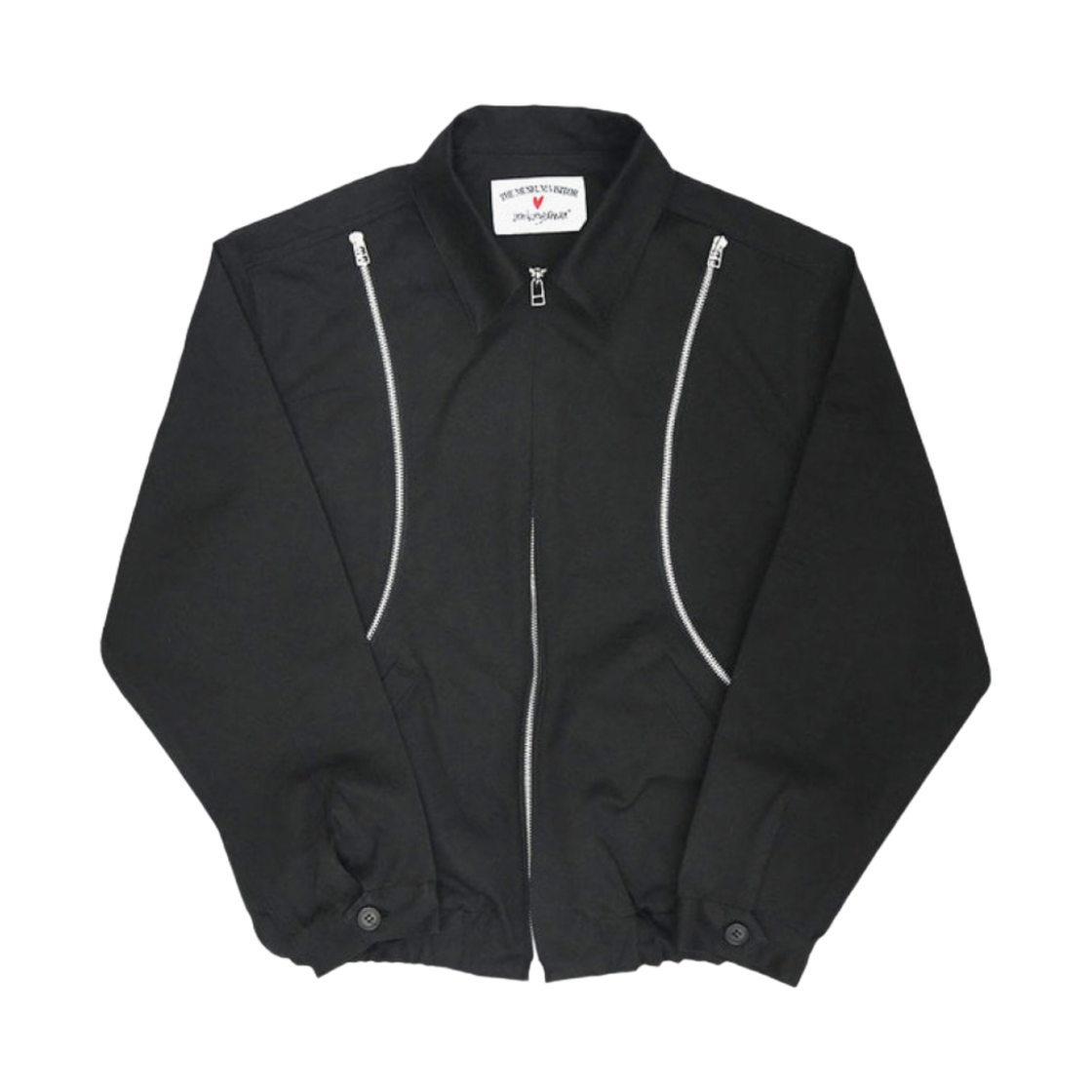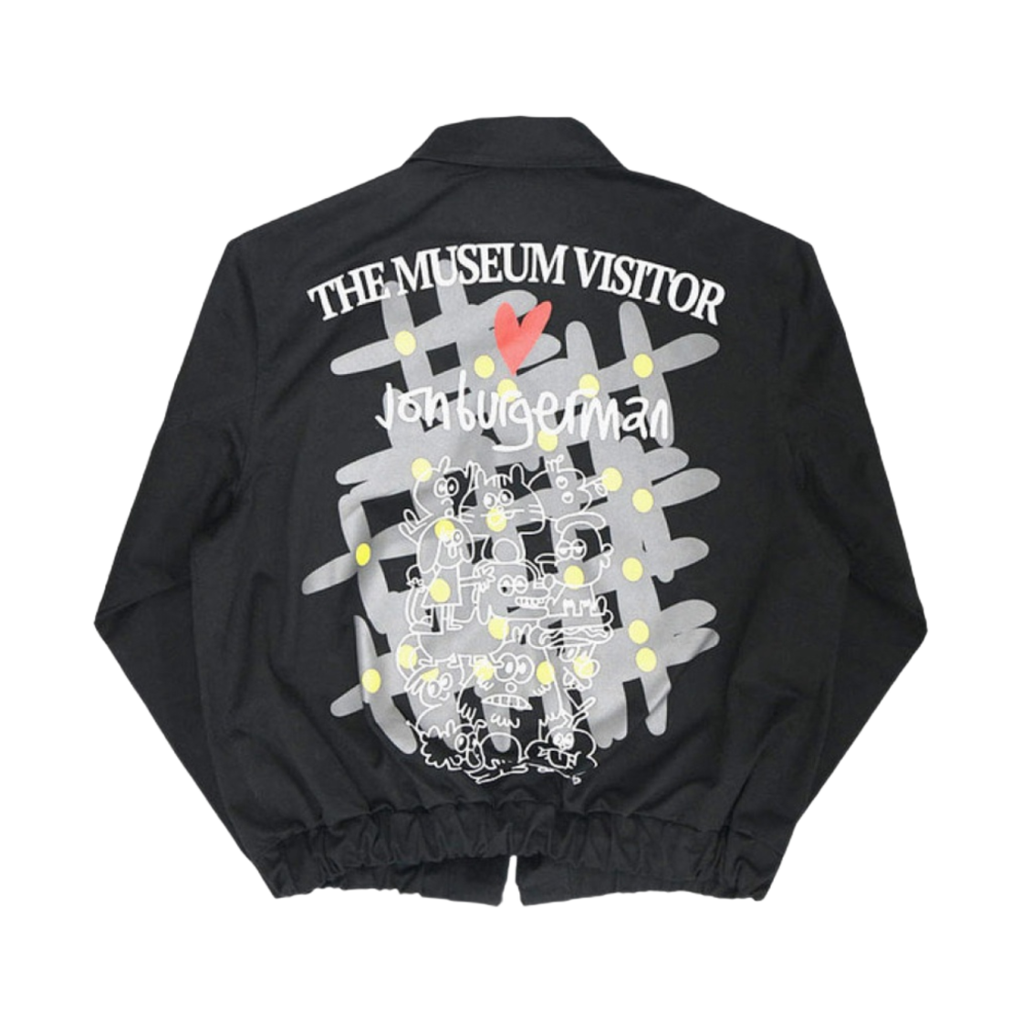 The Museum Visitor x Jon Burgerman We Are Buddy Flower Printed Curved Zipper Blouson Black