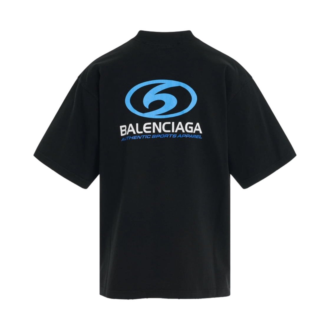 Balenciaga Surfer Cracked Logo T-Shirt Black Blue